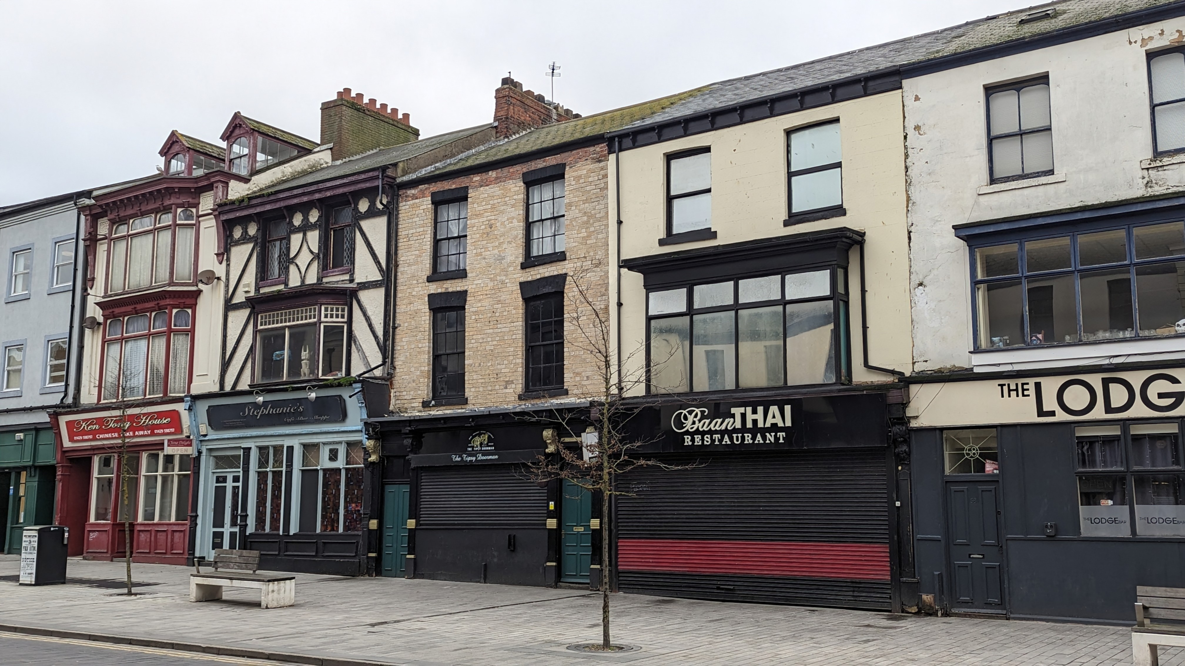 Crumbling fascia, tree branches sprouting from rooftops, and in between there’s the odd classy place like Sambuca’s,