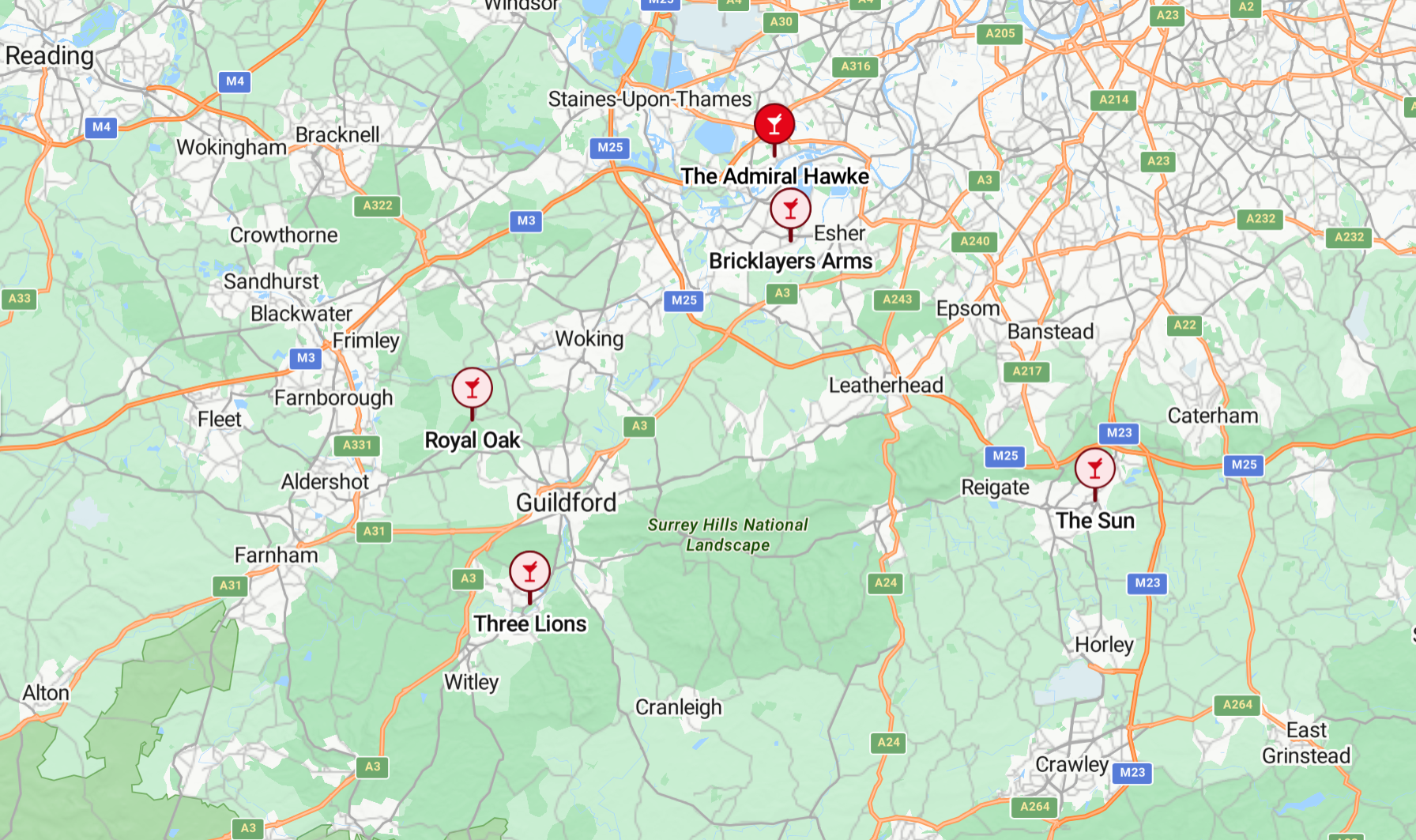 Seriously, the best Surrey pubs are in the south of the county, away from that there London place.