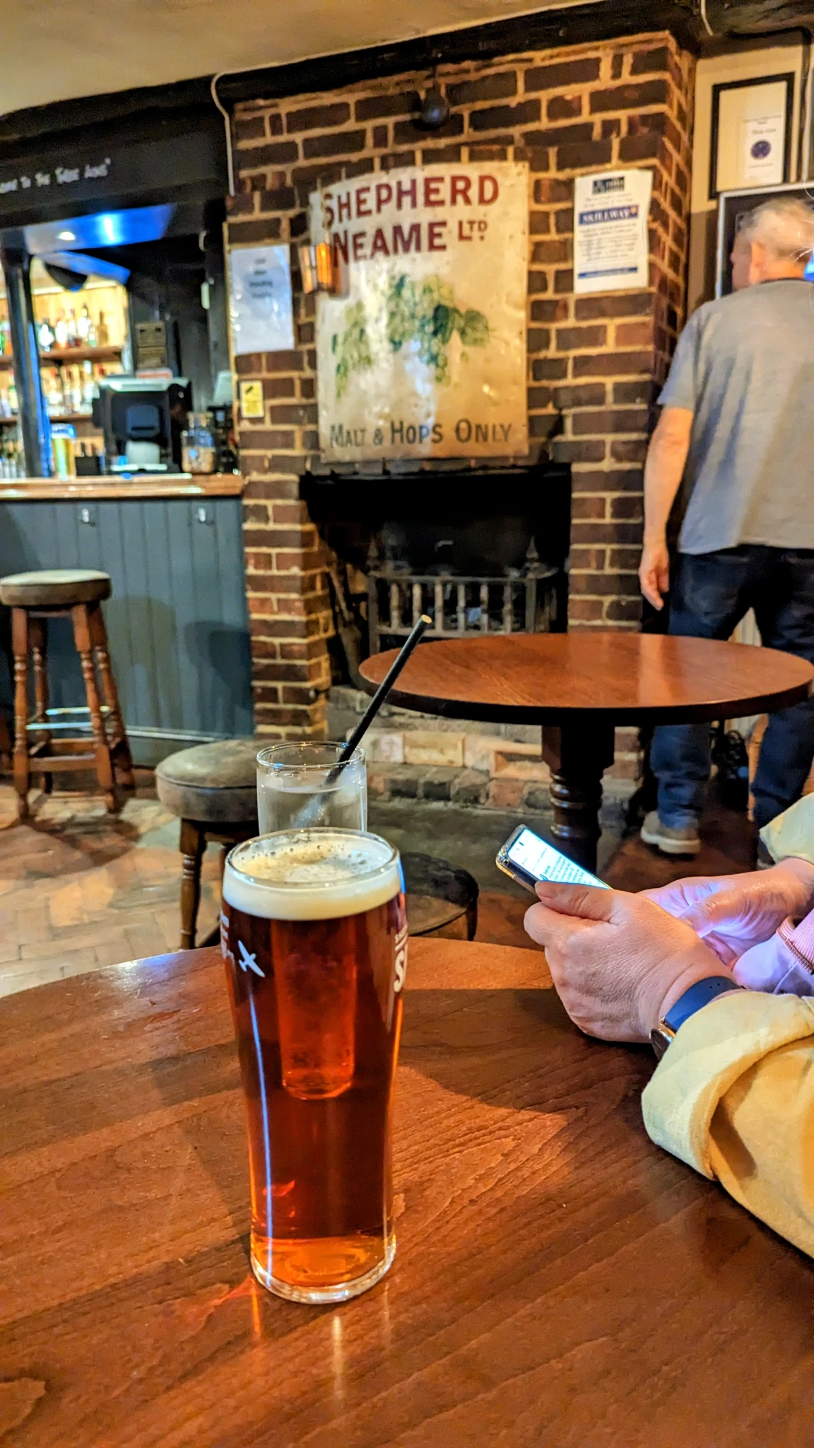 At the end of a long session in Godalming, common sense said “have an early night”. But could you walk past a pub like the Three Lions ?