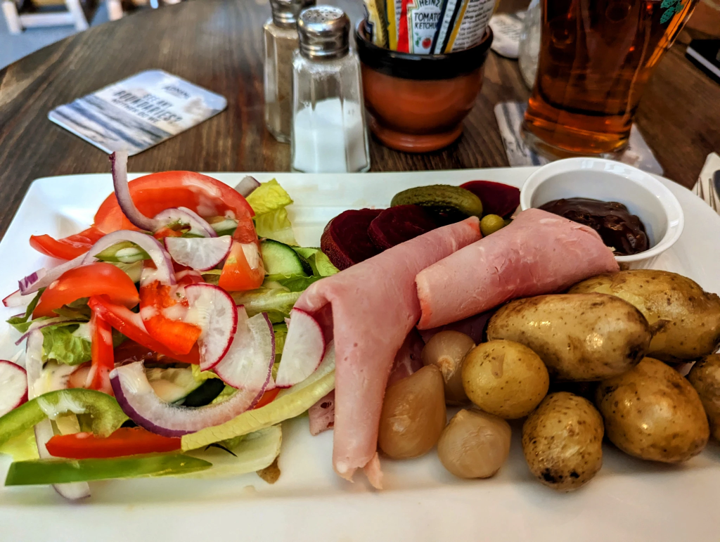 And although ham salad with new potatoes sounds a bit worthy, it was as good a pub lunch (NHS&NPSS 5) as I’ve had in years. Who knew beetroot was edible ?
