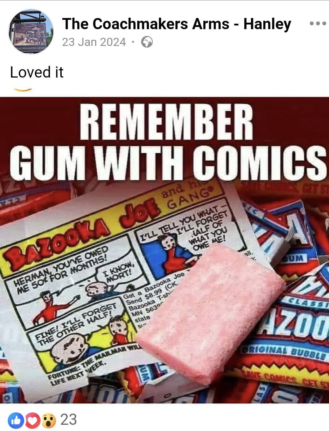 While I’m in the Coachmakers, who remembers Bazooka Joe ?