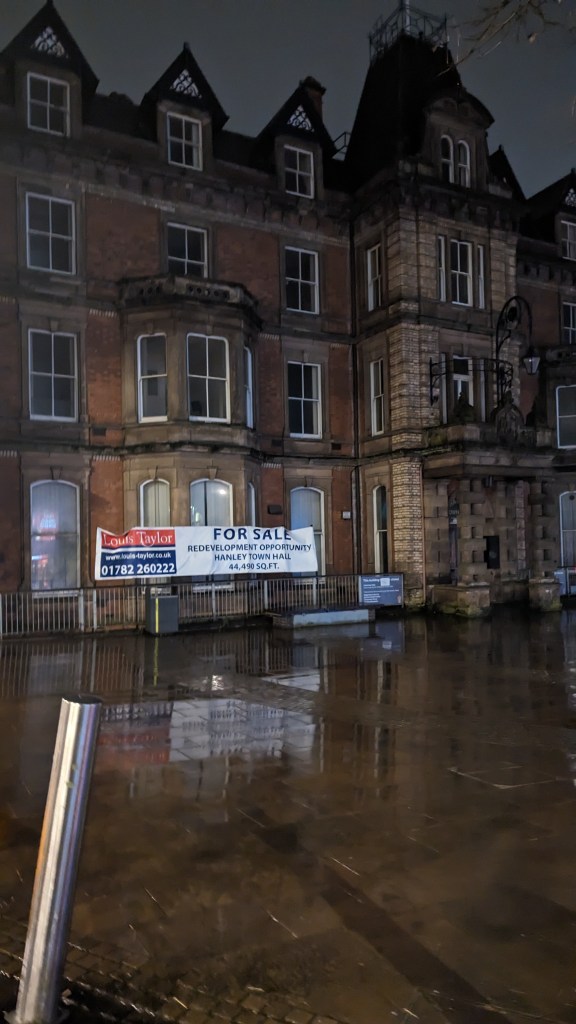 Back in the “capital of the Potteries“, nowt has changed since my last visit 2 years ago, though I note the town hall is up for sale. I guess it would make a good Brunning & Price.