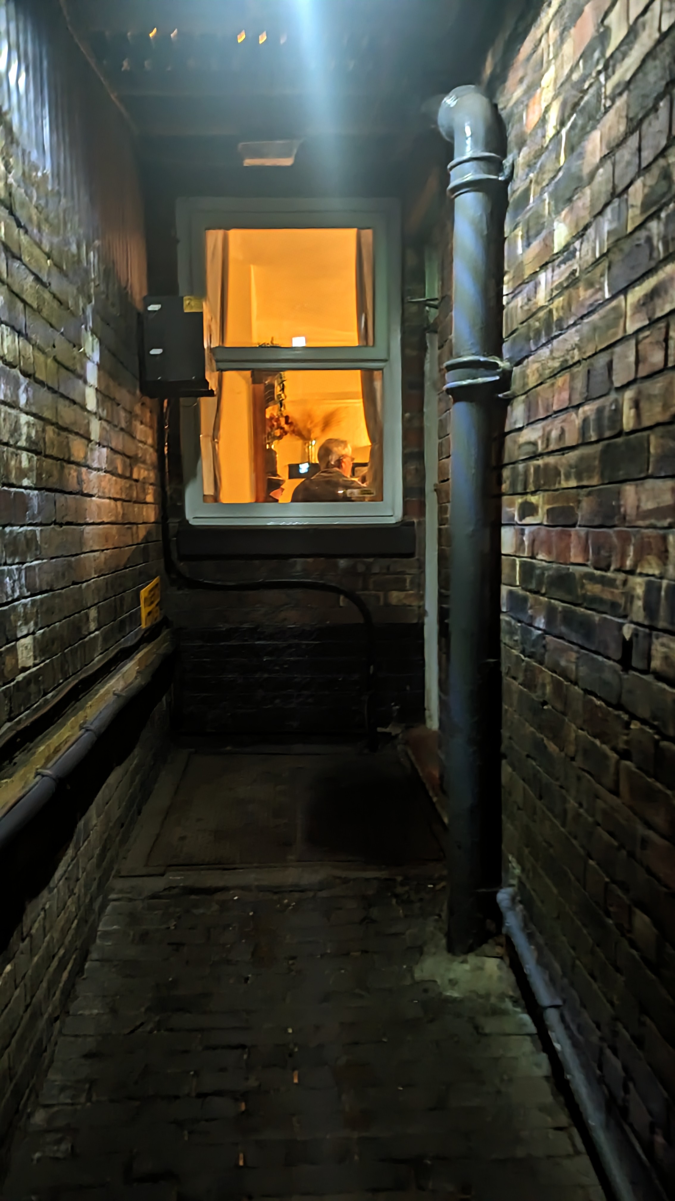 the view to the stars in the alley leading to the outside Gents,