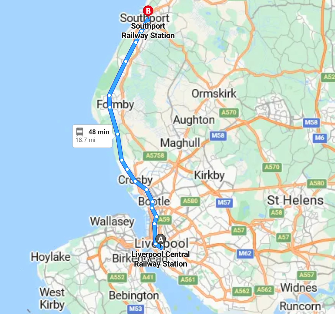 48 minutes later I was in Southport, realising just how far the northern extremities of the county were from the centre.