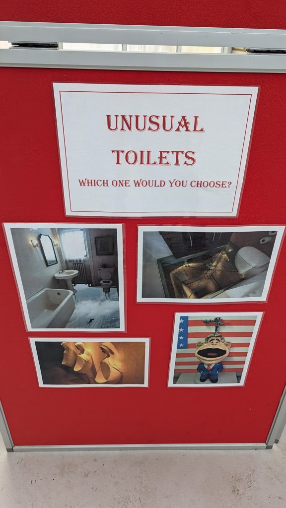 We then waited half an hour for the people who had got lost to turn up, amusing ourself with a rather interesting exhibition on the history of toilets (not as good as Stoke, Jane), cholera and “The Big Stink” of 1858.