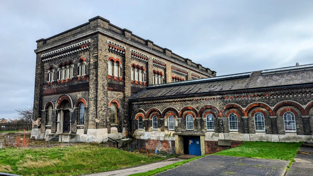 You left us having walked the mile from Abbey Wood through Thamesmead to the entrance to Crossness Sewage Treatment Works, where we joined a gaggle of other visitors suddenly worried we were lost and would miss our slot at one of the occasional tours of the old pumping station.