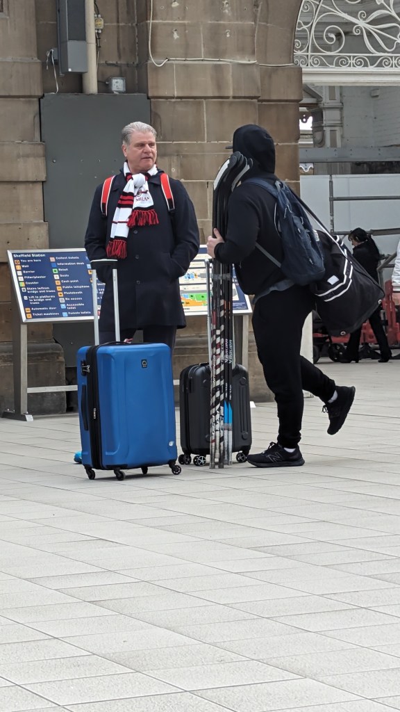 I met Will on the platform of Sheffield station, where folk with Milan scarves and hockey sticks (no idea) were adding a touch of colour on a dreich South Yorkshire morning.