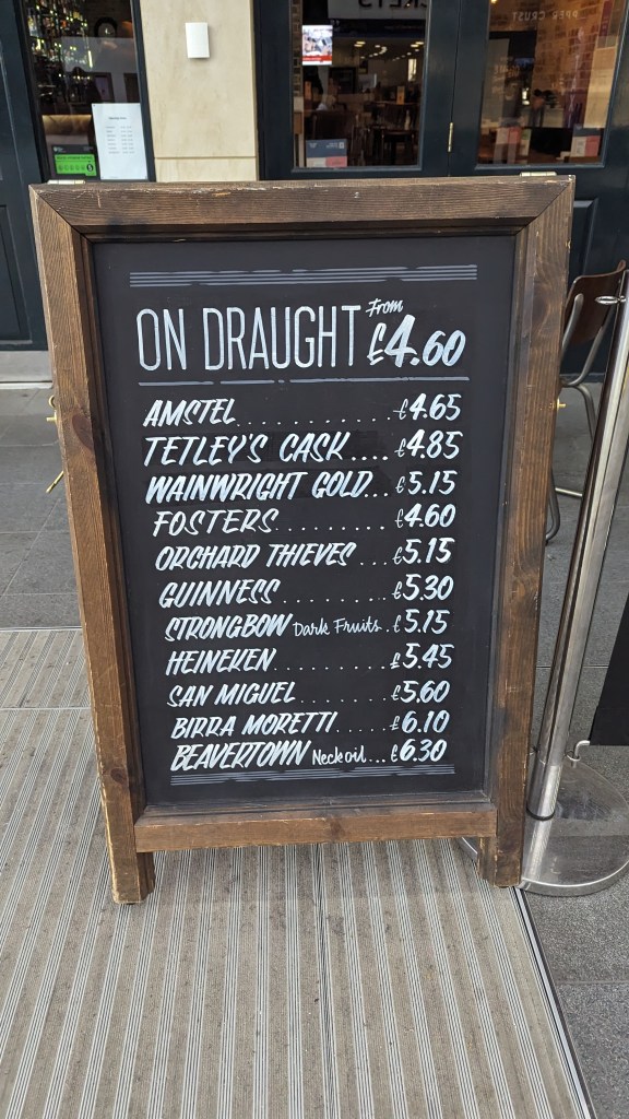 and briefly consider a pint of cask Tetley in the station pub (the one that’s NOT Spoons).