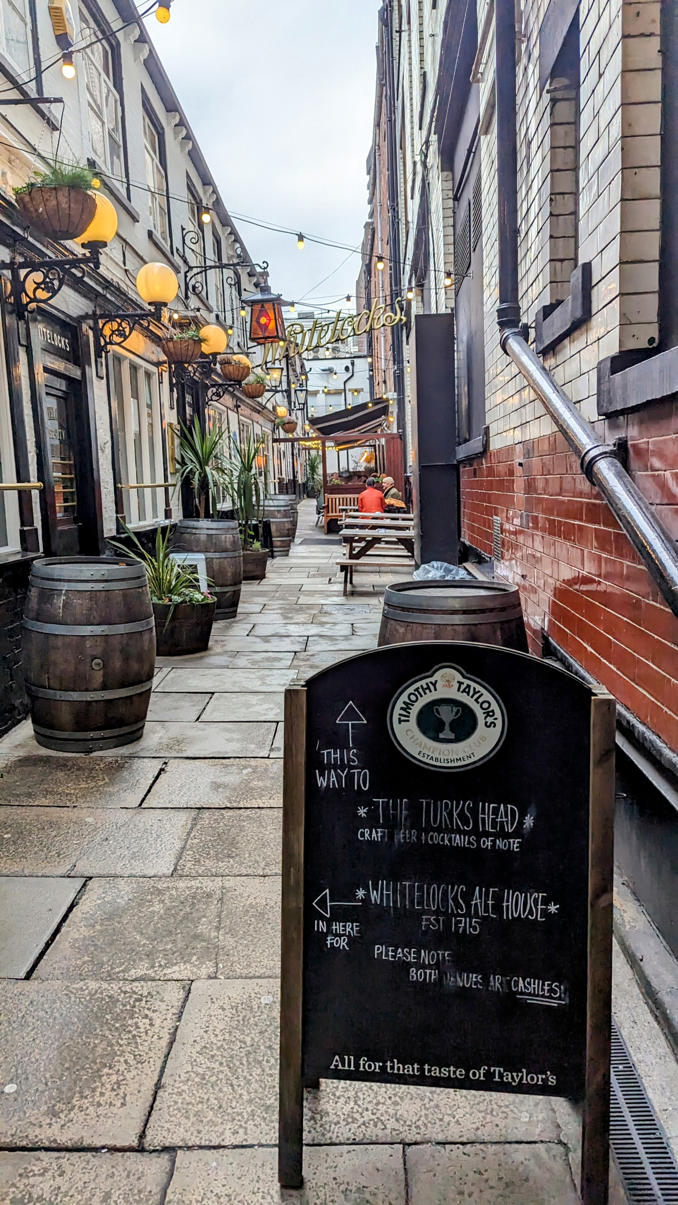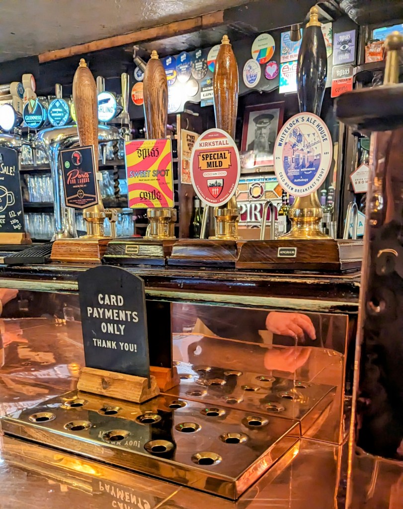 Rightly famous, but is it still “great” ? Well, in 2018 I said “Everyone knows Whitelocks, it’s the Betty’s of pub. There’s even a “Wait to be seated” sign. Still a Proper Pub, despite that, with folk of all ages and varieties inside and out”. and in 2021 repeated that theme “Whitelock’s is exactly the sort of place everyone goes to, and feels comfortable in. Not a museum piece at all, and very pubby“.