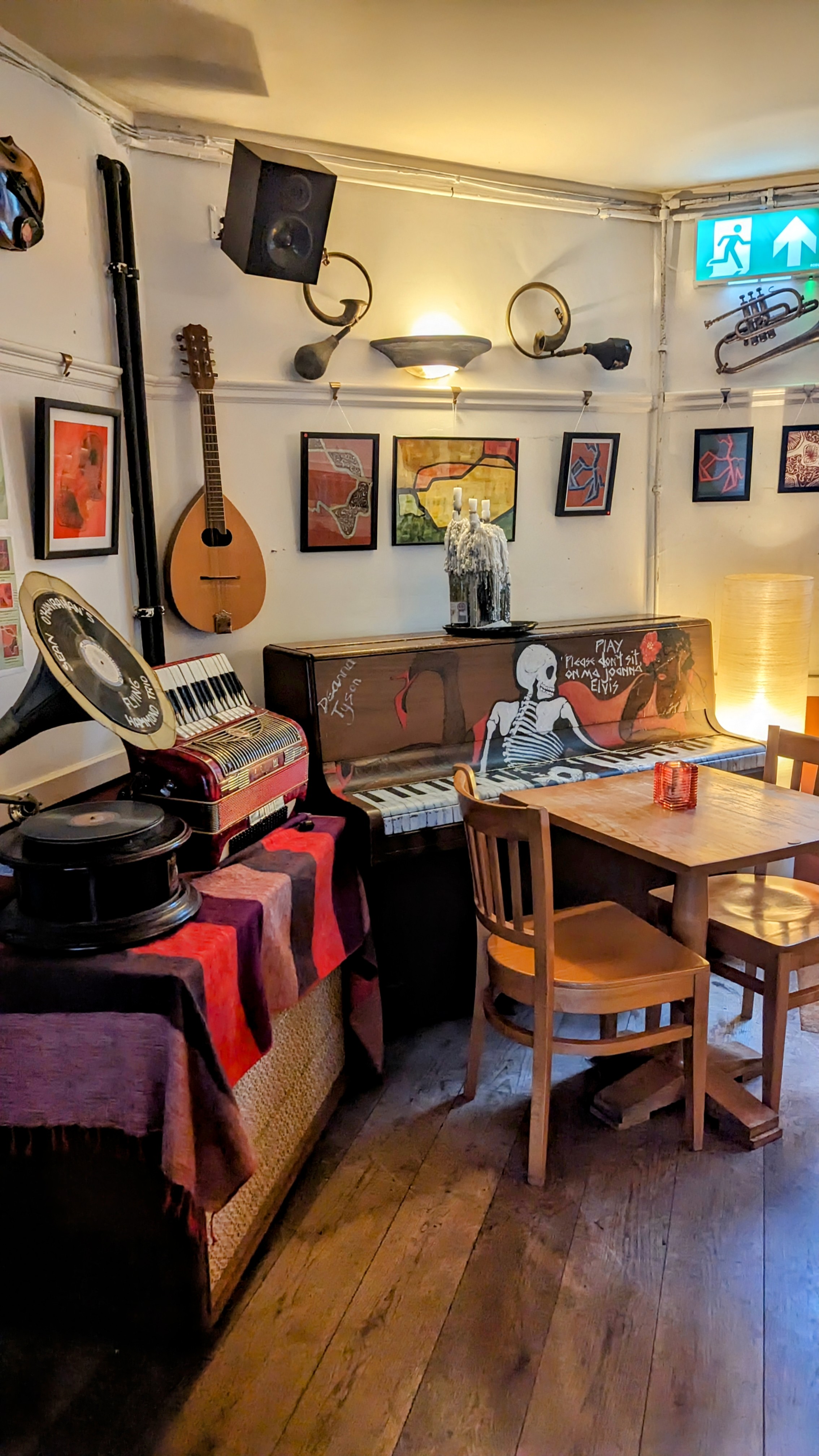 The pub itself is quirky as ever, dominated by musical tat and “hot rocks” cuisine and a Gents that may be “problematic” to some of my readers (probably not).