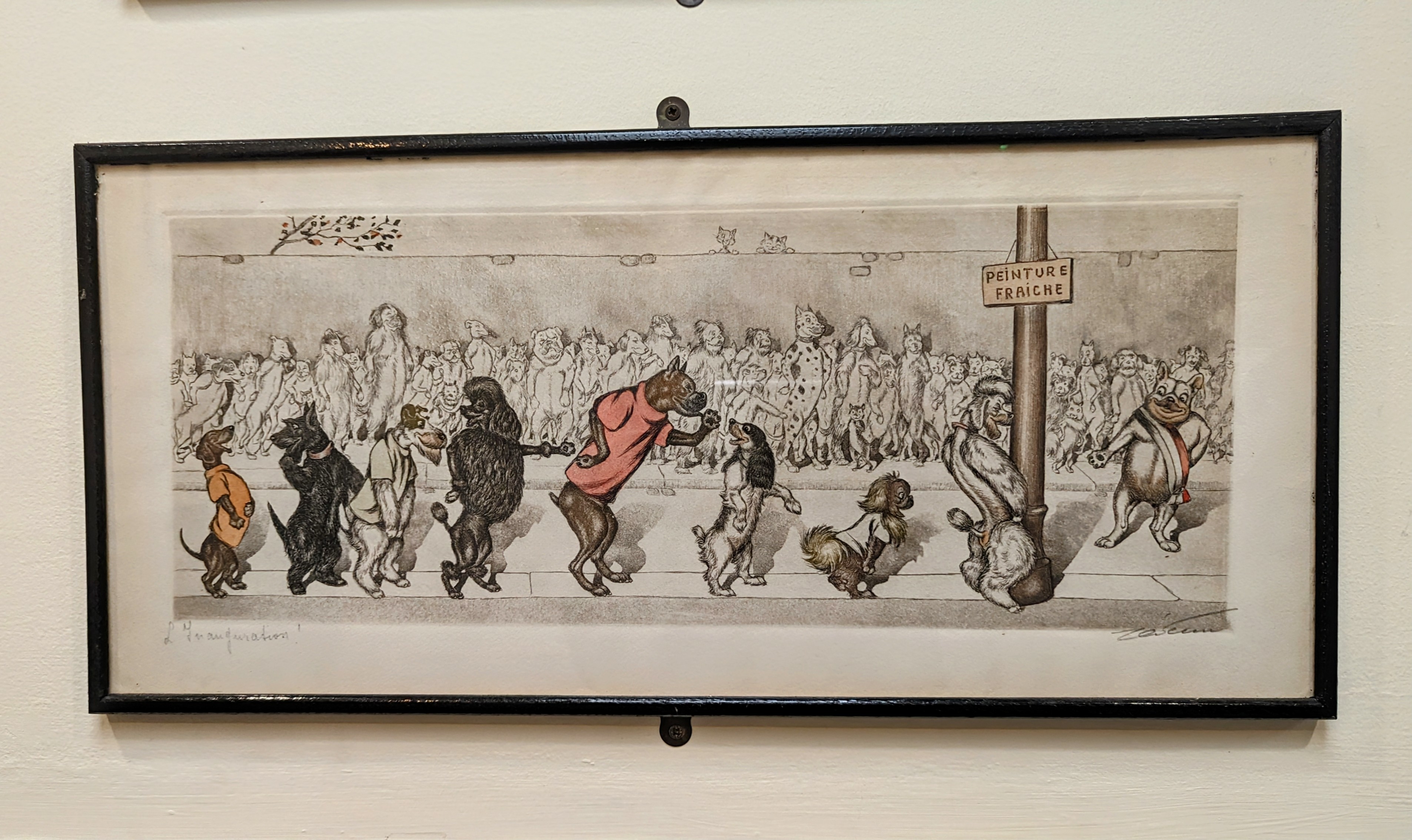 while I nipped to the Gents to admire that combo of “Old fella” and “talking French dogs” unique to country dining pubs.