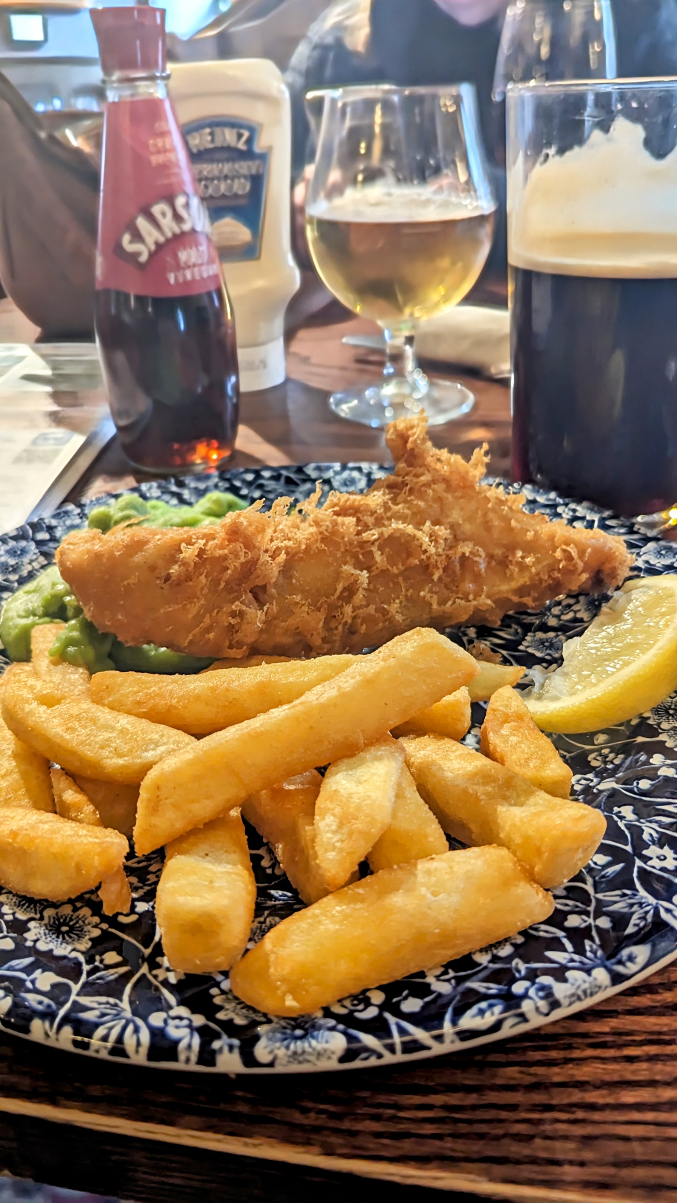 Pensioners portions for food, the fish looks a little sad but it’s a fiver. Mrs RM’s OP lacks a little bite, too.