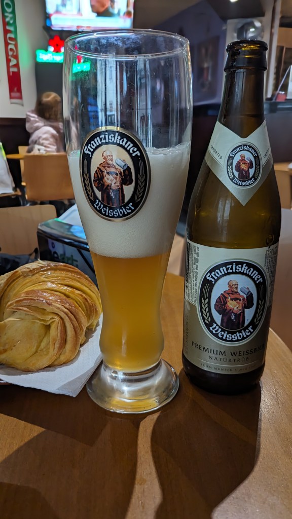 We stayed for a huge pastry, and a coffee, and then I succumbed to the bottle of imported German wheat beer that seemed to be the guest ale.