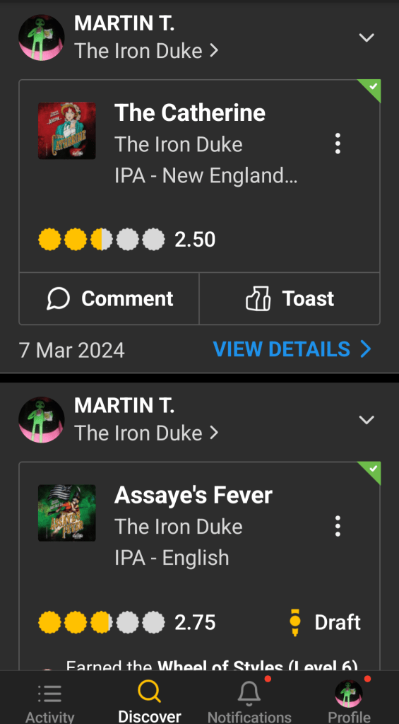By huge coincidence the Iron Duke was on my list having been tipped by Rate Beer, which is to Untappd what Beer In The Evening is to Pubs Galore. Possibly. We really need CAMRA to produce Good Beer Guides for every country except Saudi Arabia.