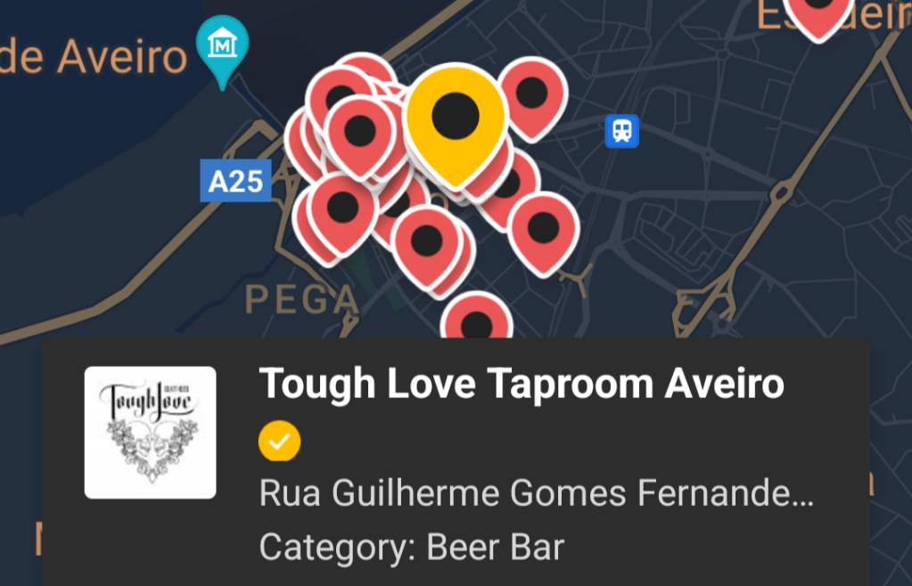 Our first night in Portugal. Just the two 7.5% Black IPAs for Mrs RM, and the night was still absurdly young as we left the sole “verified venue” on Untappd (the yellow dot; the red dots have Super Bock check-ins).