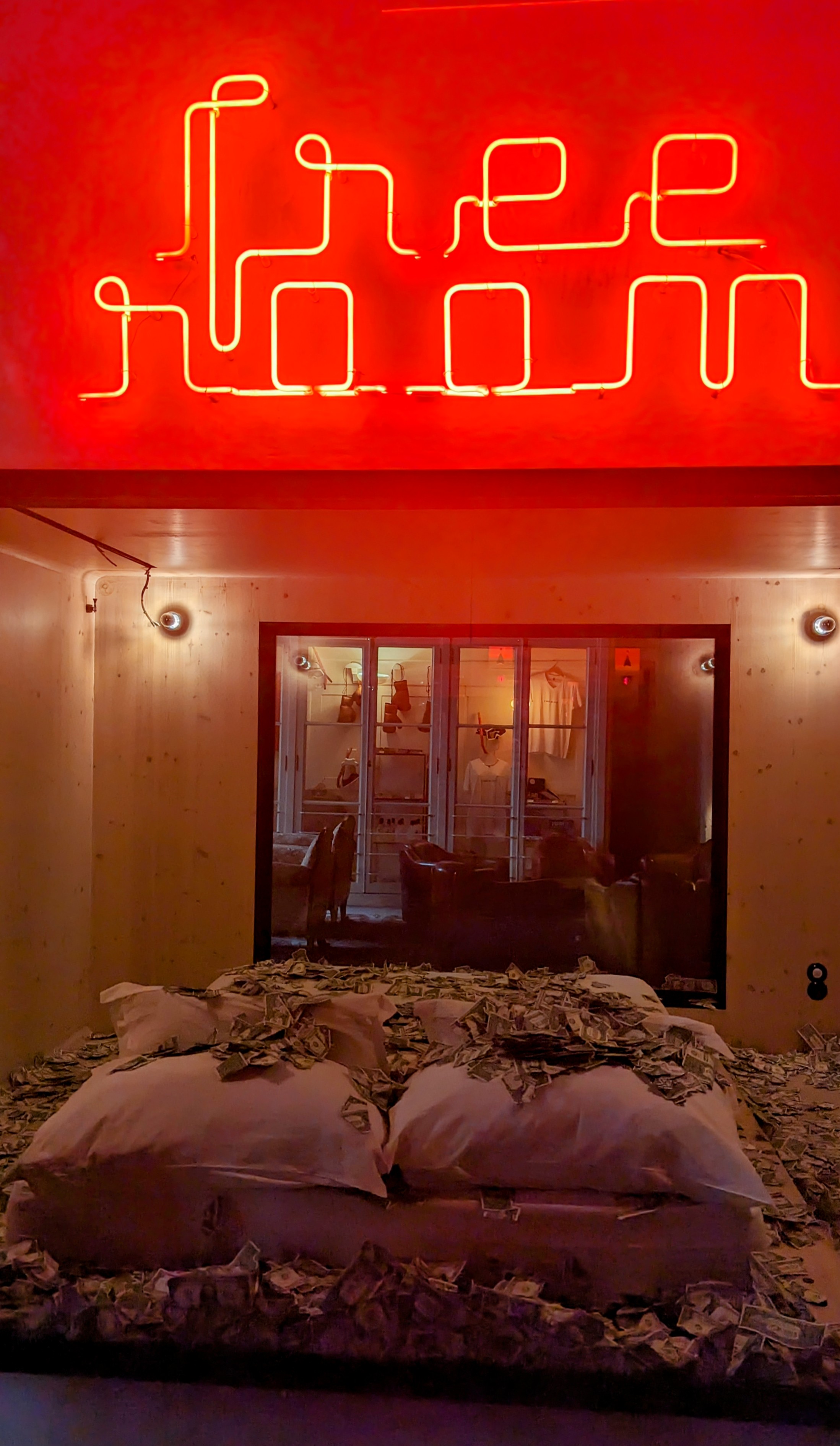 The centrepiece is a room you can sleep in for free (top), as long you’re happy to be on public display all night.