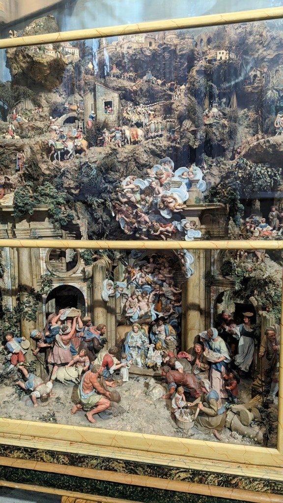 5 euro entrance, and not even a tower to climb, but worth it to hear Mrs RM get told off for taking photos of priestly clothes, and this wonderfully chaotic Adoration of the Magi.