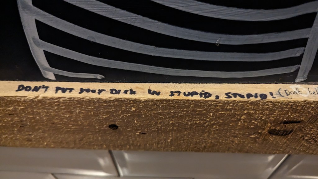But I need food. Unfortunately I’ve arrived between food operations (burgers out, smoked meat in) , and there’s no crisps.