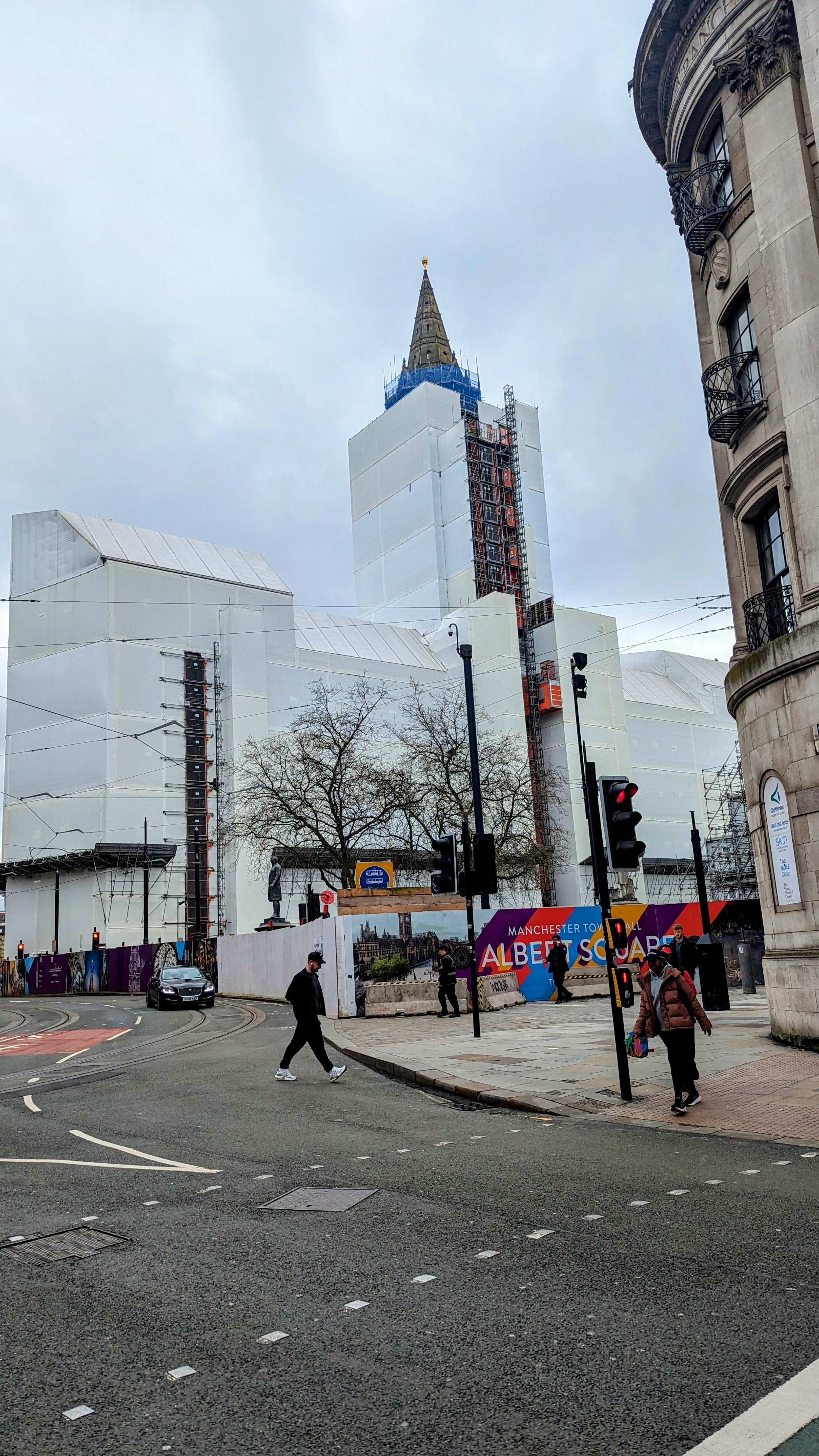 I always forget how central he is now, 2 minutes walk from the Art Gallery, Library and the construction site that is the Town Hall, whose scaffolding seems to dominate Albert Square more on every visit.