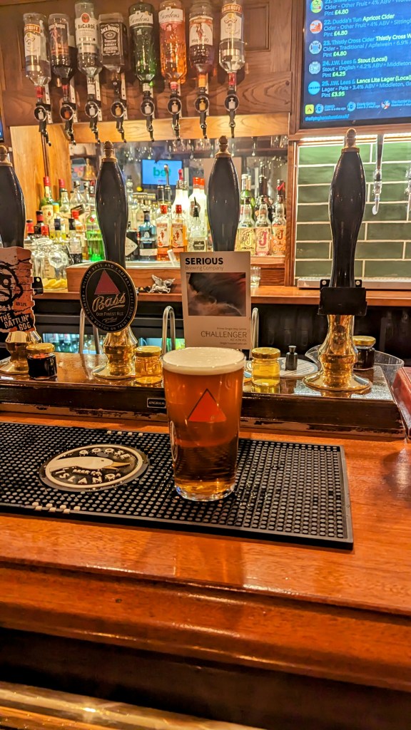 Another huge cask and keg range on a quiet night in a Lancashire textile town, in fact a very similar line-up to the Baum (connected in some mysterious way, I’m told), so Mrs RM had another “Under the Eildon Tree”, but my choice was rather easier.