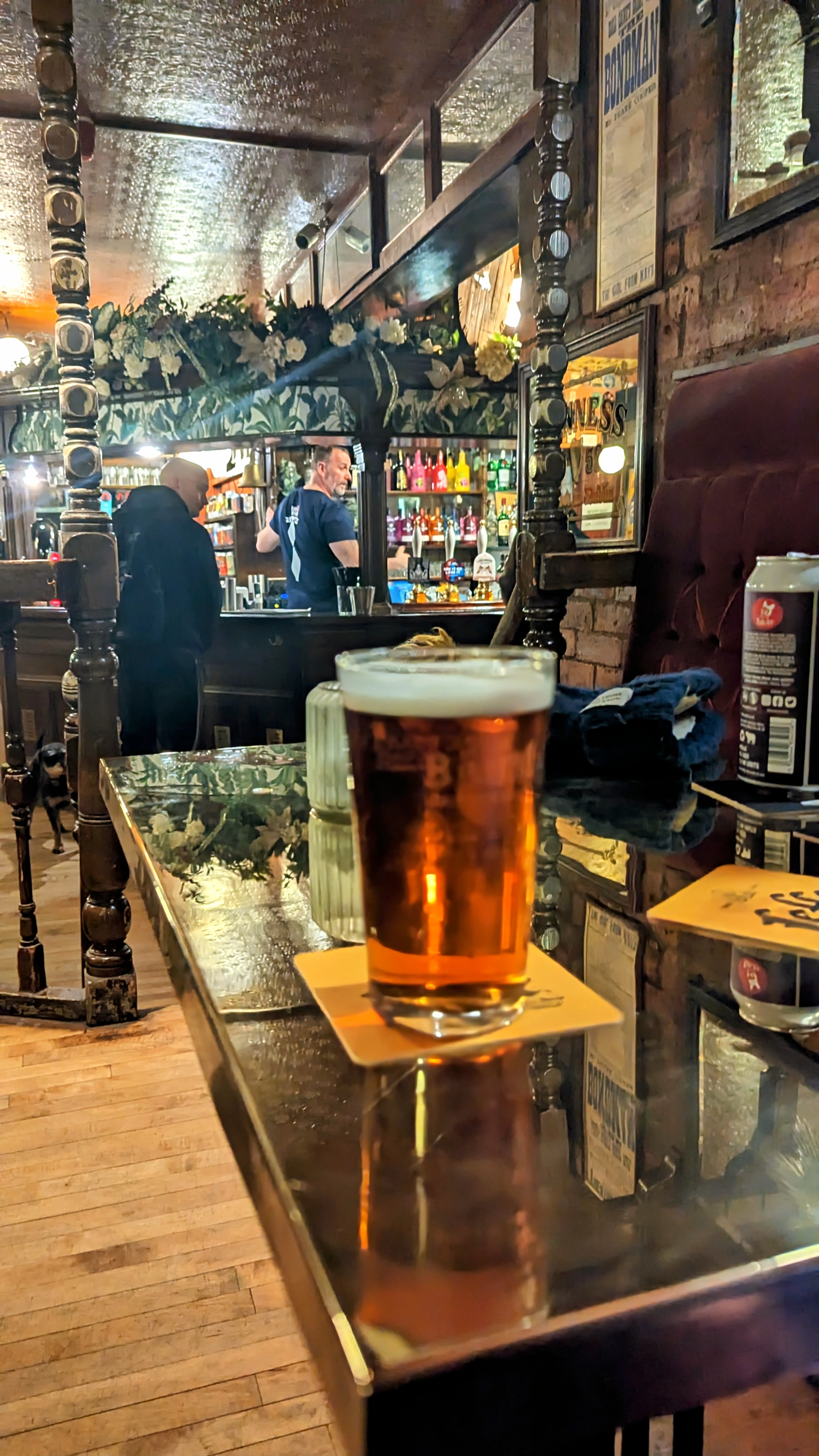 but it was doing decent trade on a wet Wednesday, with the burger and chips keeping family groups as happy as the topers. Completely unpretentious, I thought.