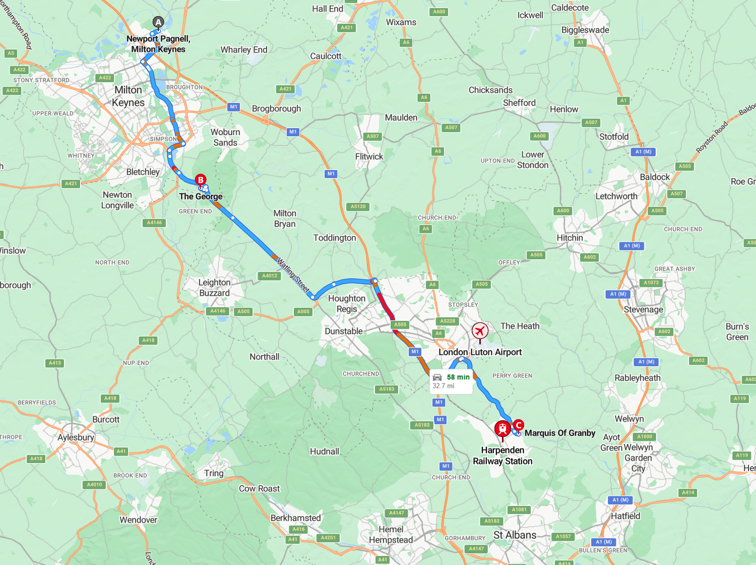 We left bucolic boring Bucks and headed into boring bucolic Beds via Woe-burn, and thence onto the Dunstable Northern Bypass, which probably deserves a blog of its own.