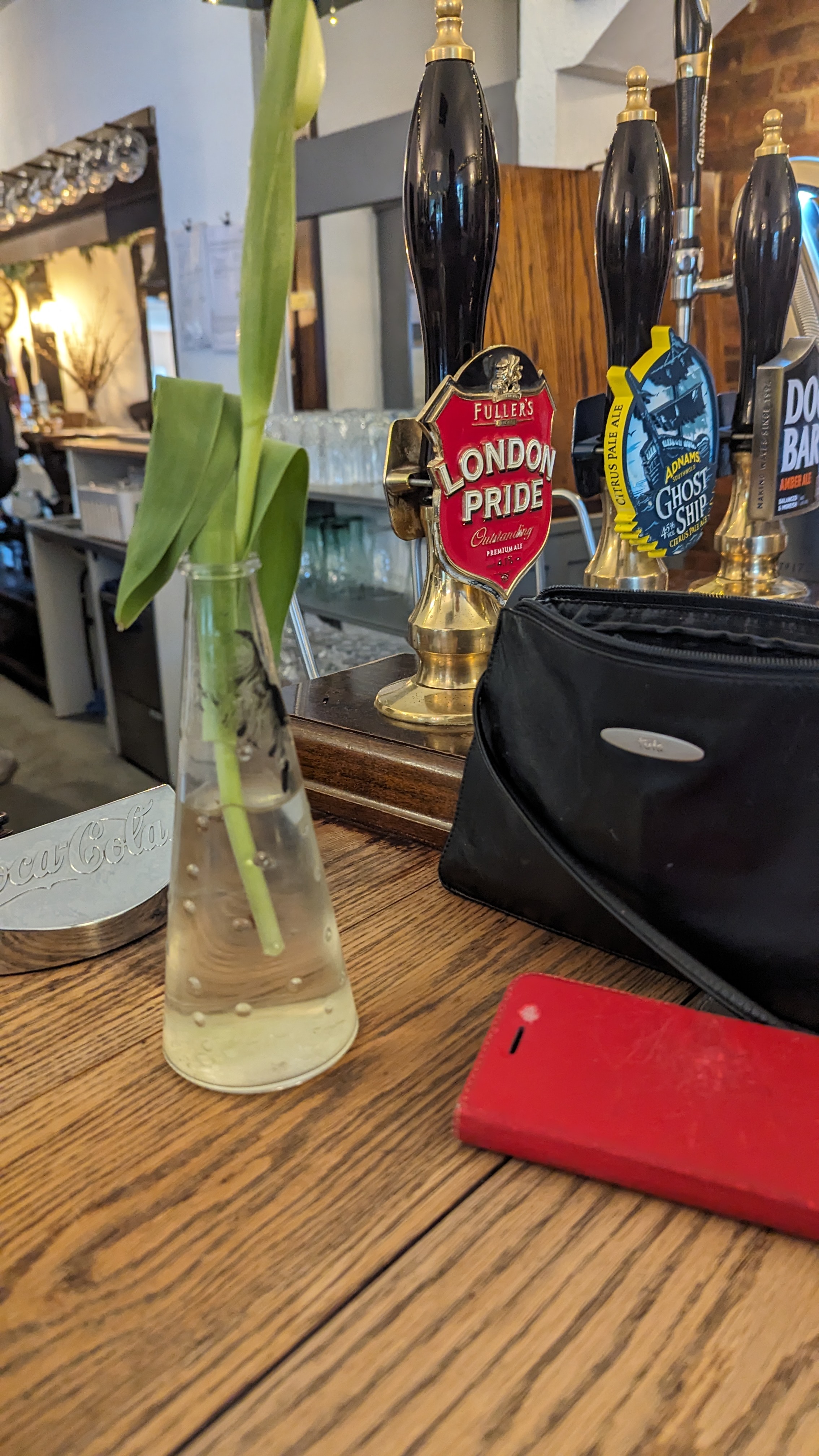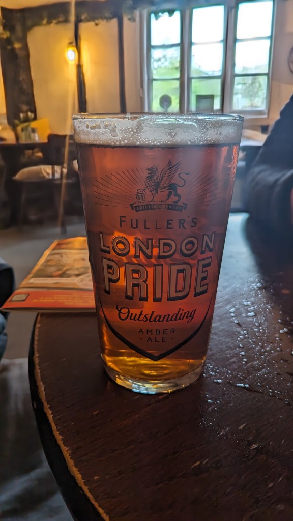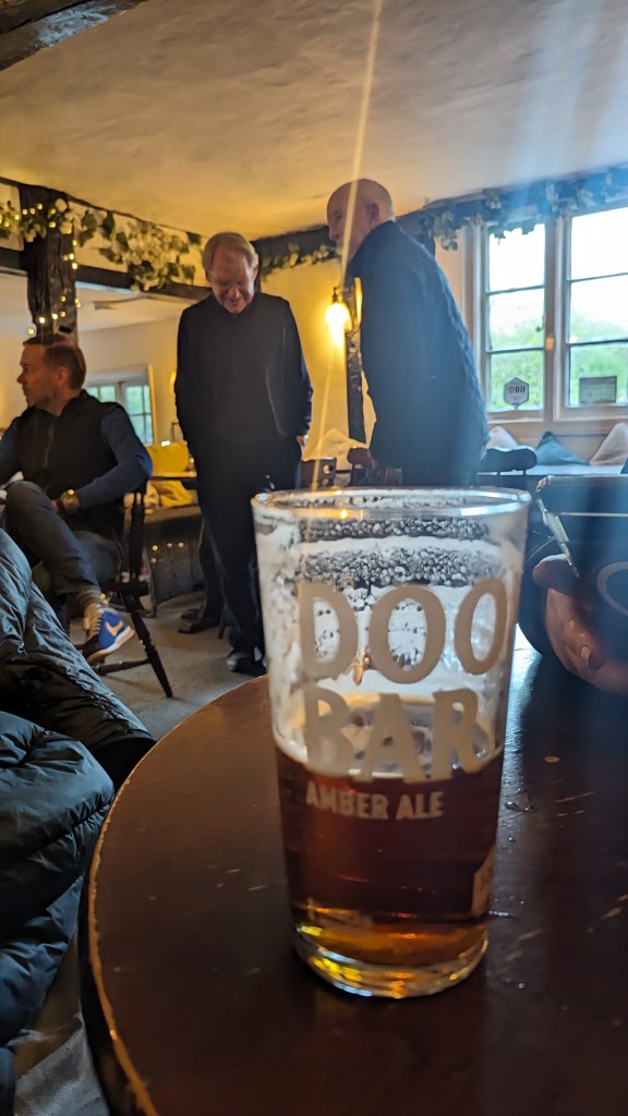 We’d entered the public bar, but Mrs RM had taken umbrage at the dog hairs and discarded cap on the corner seat and gone off to look for something smarter while I ordered.