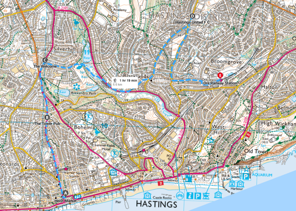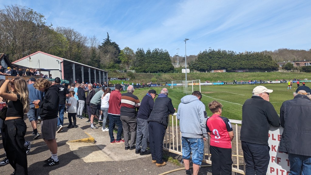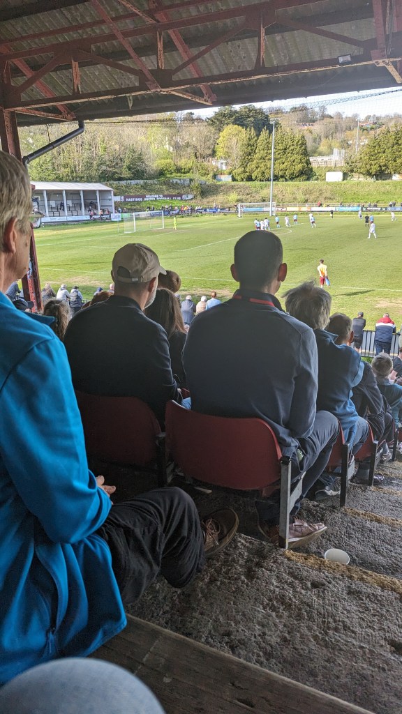300 miles north, James was heading to the Etihad in torrential rain to see Level 1 City take on mighty Luton; I’d decided to take in some “salt of the earth” football at one of the oldest grounds in the country at Hastings United in Level 7.