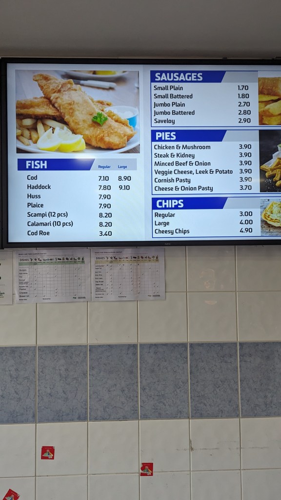 I’m sure Peter’s is a famous name amongst the south coast chippies, though this one seemed to be run by lovely Turkish folk who let an old fella have his chips “on tick” and had the Spurs game with a commentary from Istanbul.