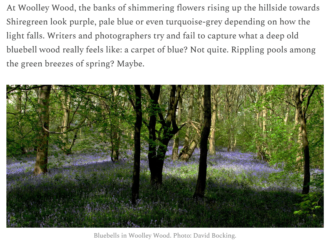 The Tribune, an on-line subscription newspaper, told us to go to see the bluebells in Woolley Wood.