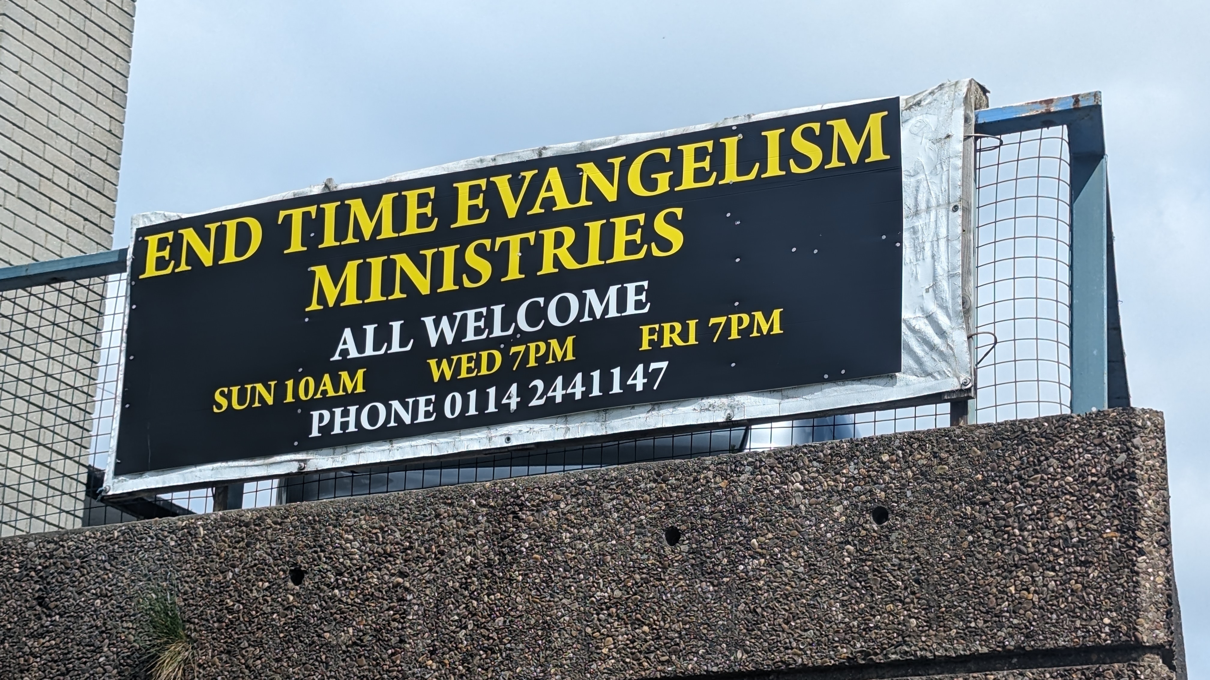 20 minutes walk past Wincobank’s closed pubs and churches with trees growing out the top, and the odd burst of colour,