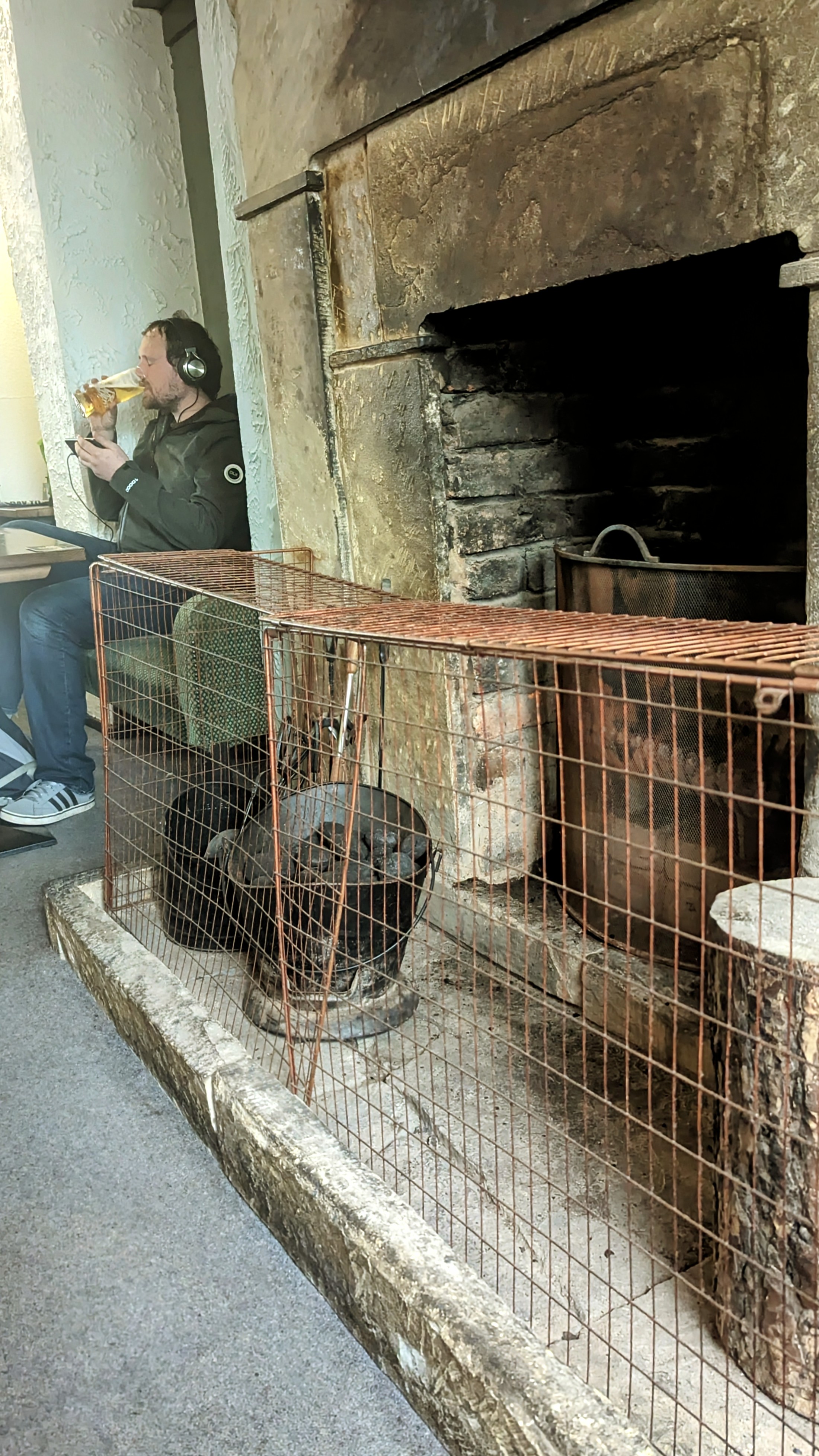the giant fireplace,