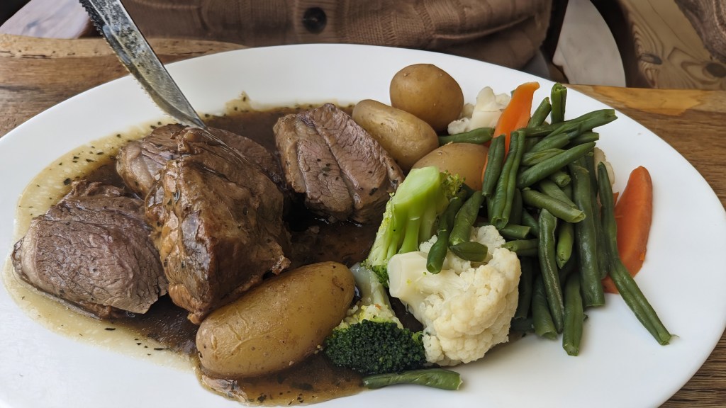 This isn’t a fancy dining pub, but in many ways it’s an exemplar one, with lunch from 11:30 for OAPs who like to be eating from midday, friendly but unfussy service, a simple menu,