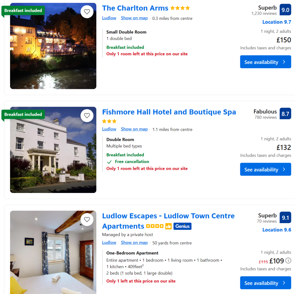 A night in Ludlow, where the hotel prices told us the campervan was doing the work,