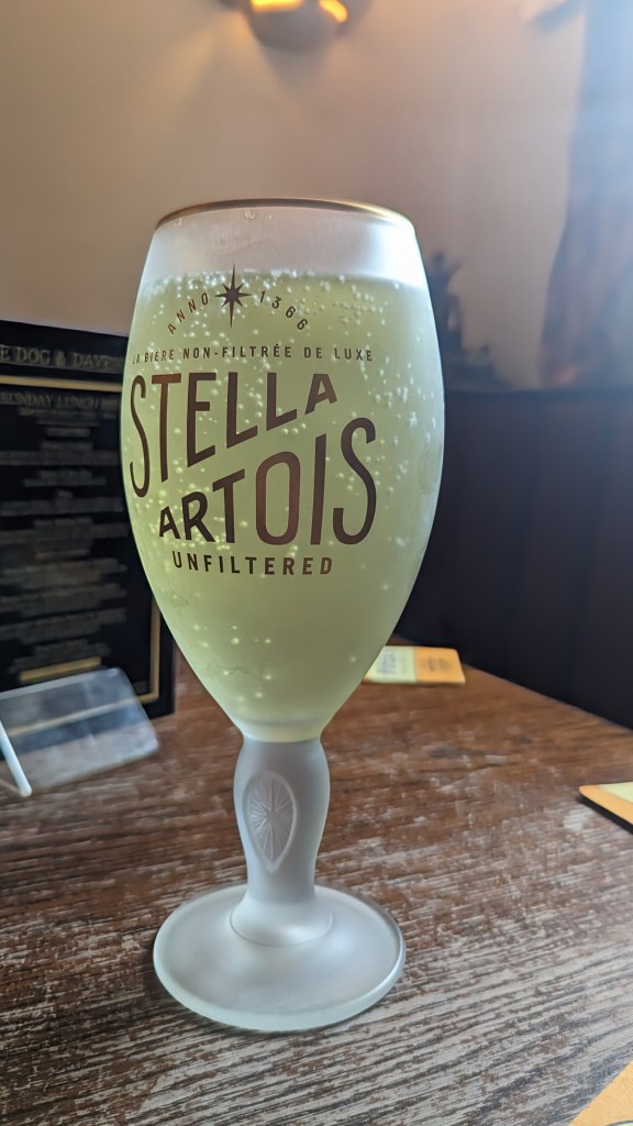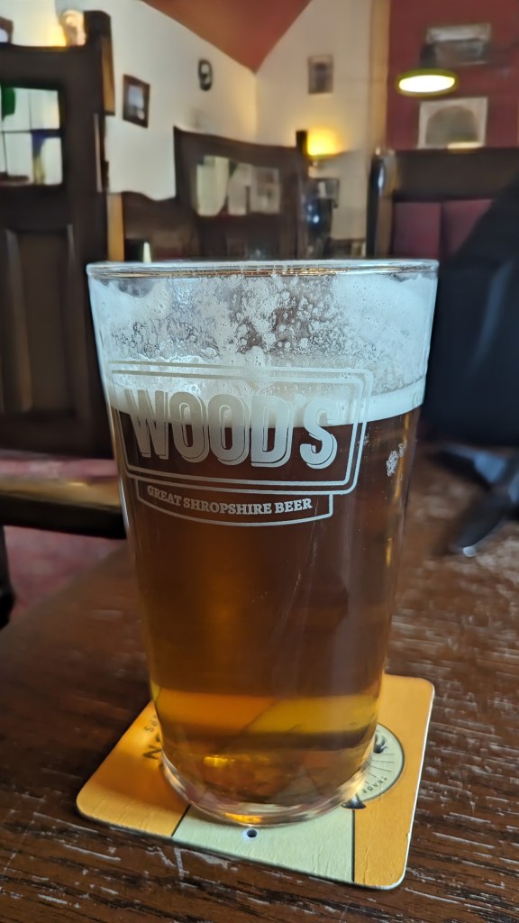 Mrs RM’s enjoyment was aided by her NBSS 3 pint of Ludlow Gold (in Woods glass, wha’ppen to Woods ?); the DES had lime and soda (in a Stella vessel, wha’ppen to Stella ?).