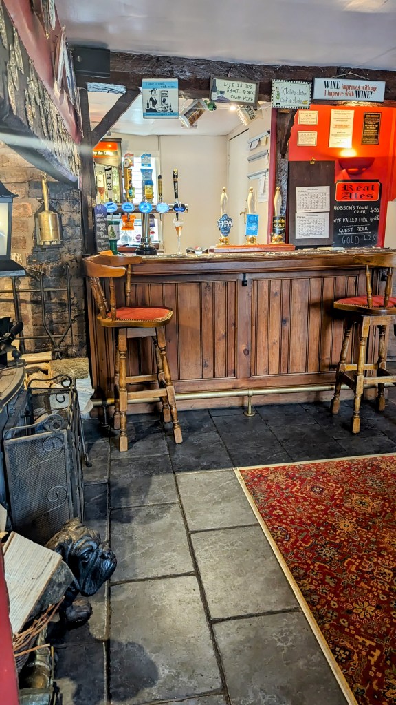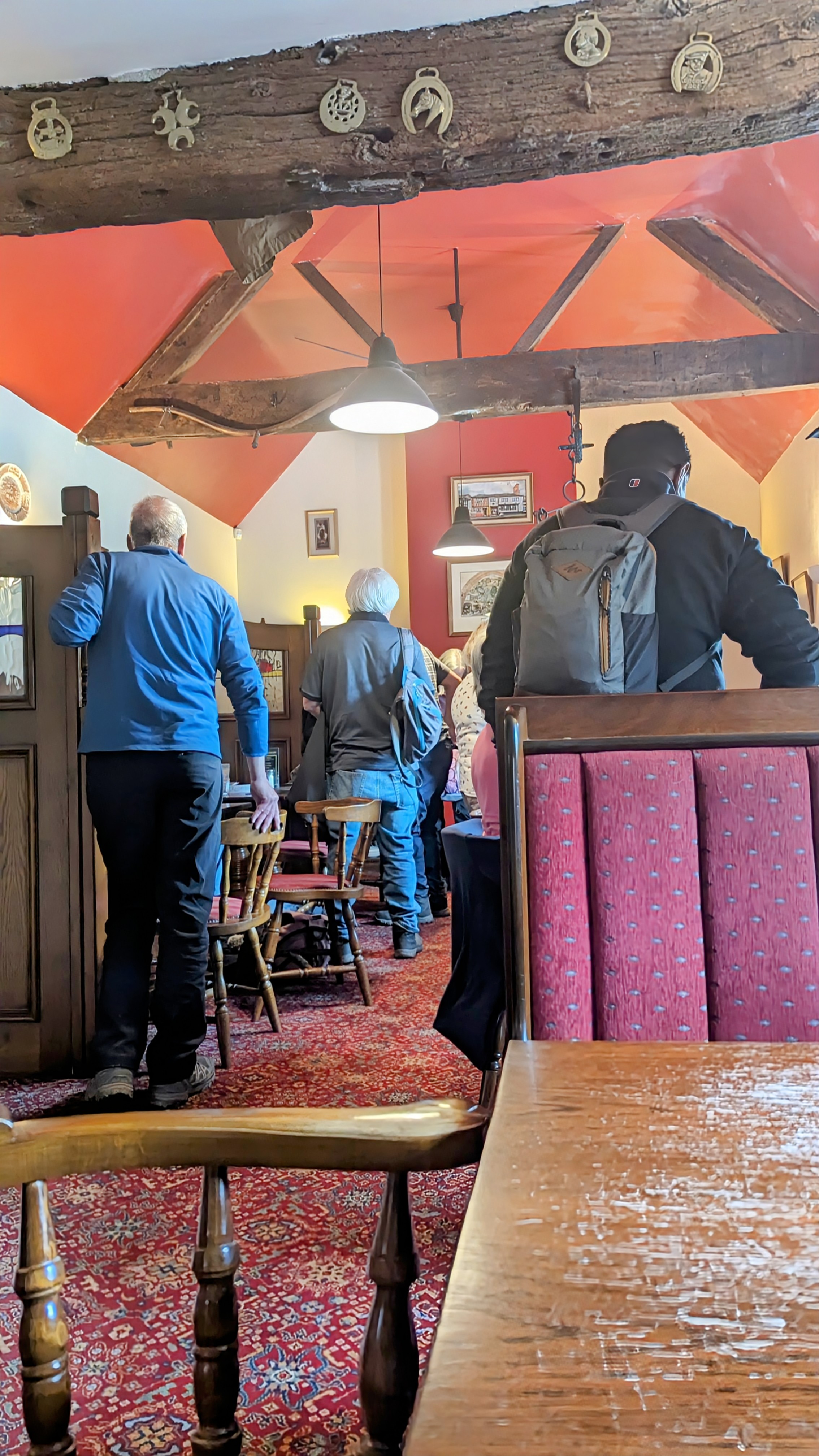 The wait for our lunch seemed longer than expected, but at least we had WiFi. A charming but rather too attentive landlady came over to tell us the chef had started cooking for the Ramblers before us despite us getting in our (simple) orders first and I suddenly resented the M6 toll charge again.