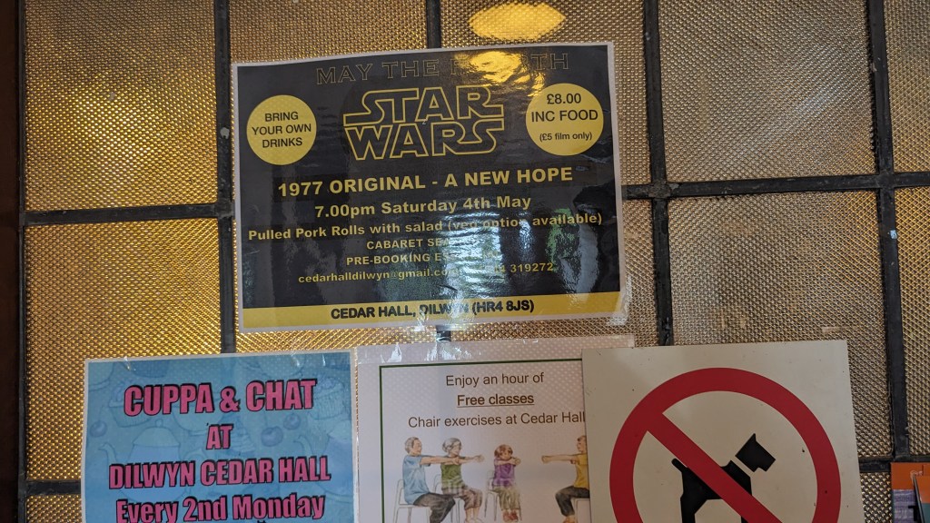 Pretty village, unfussy village pub, Star Wars shown on Star Trek Day.