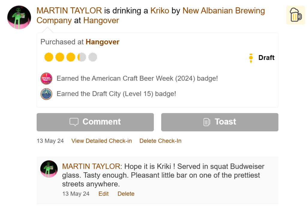 Those are the prices for the smaller serves, I guessed. I had a big Kriko from New Albanian Brewing, which Untappd was convinced was coming from Indianapolis. Can that be possible ?