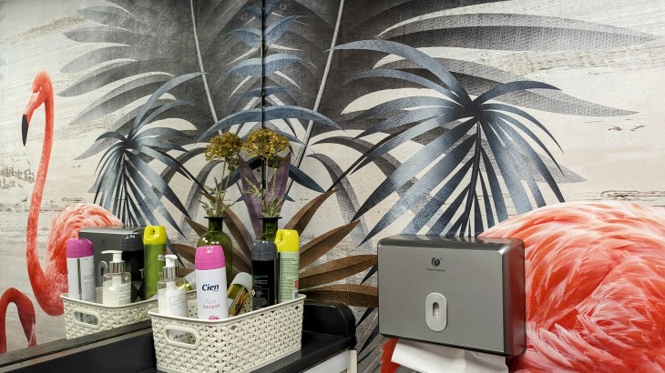 The star of the line-up is the unisex loo. Blackpool Jane will aperove, and not just of the flamingo (or is it a pelican ?). Add 2.