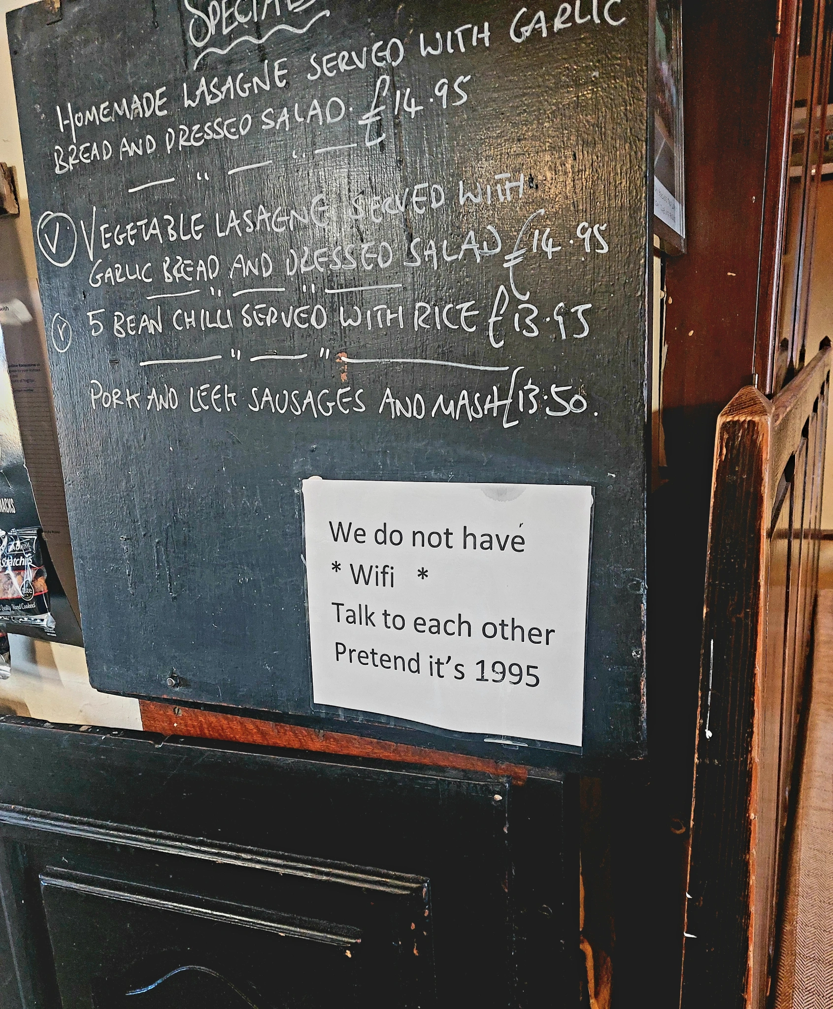 It deserves a point deduction for the “Pretend it’s 1995” note on a board charging £13.50 for sausage and mash, mind.
