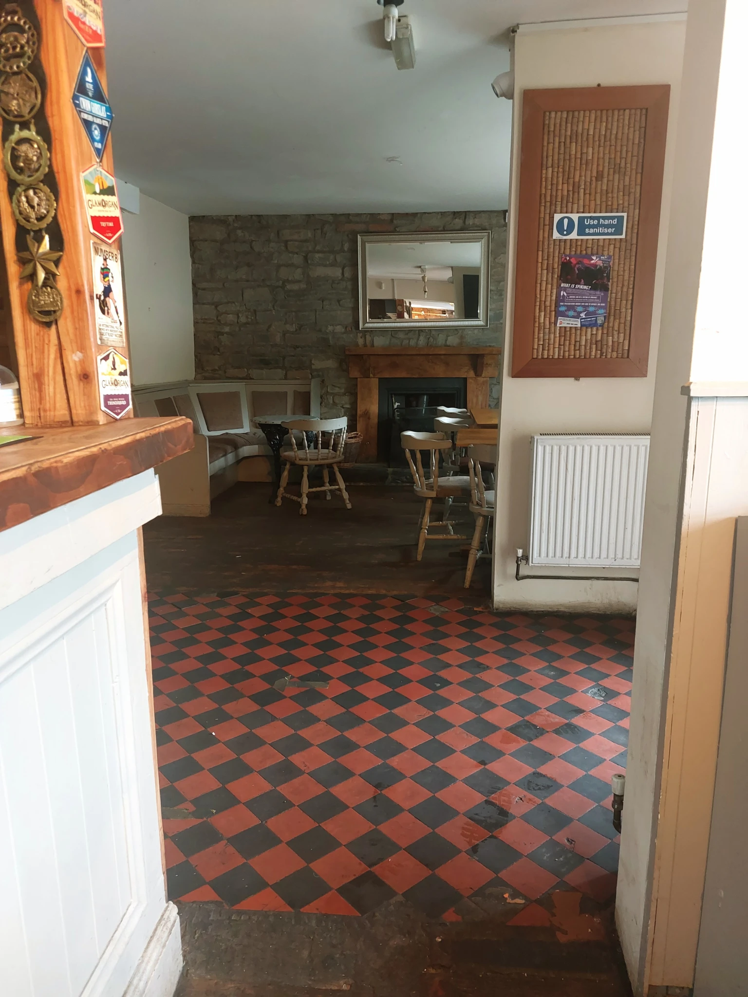 A gorgeous old one-roomer where the Bass pump was nearly obscured on the bar, but not quite.