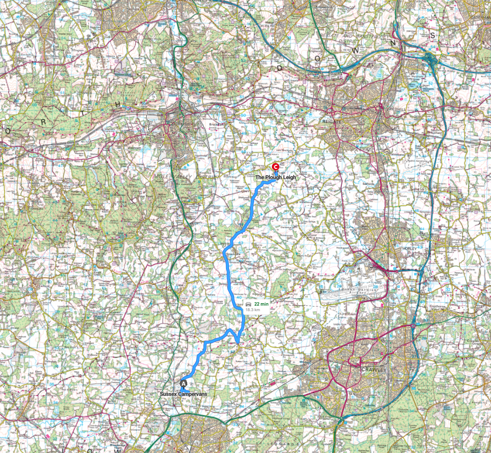 We’d spent the night in a public car park in Dorking with three (3) alpacas and a sheep, so that in the morning (after a large “regular” Americano at a rare decent Costa) we could nip down the A25 past the wealth management offices above Horsham to give our campervan (still not named) a “habitation check”. I could do with a habitation check, I reckon.