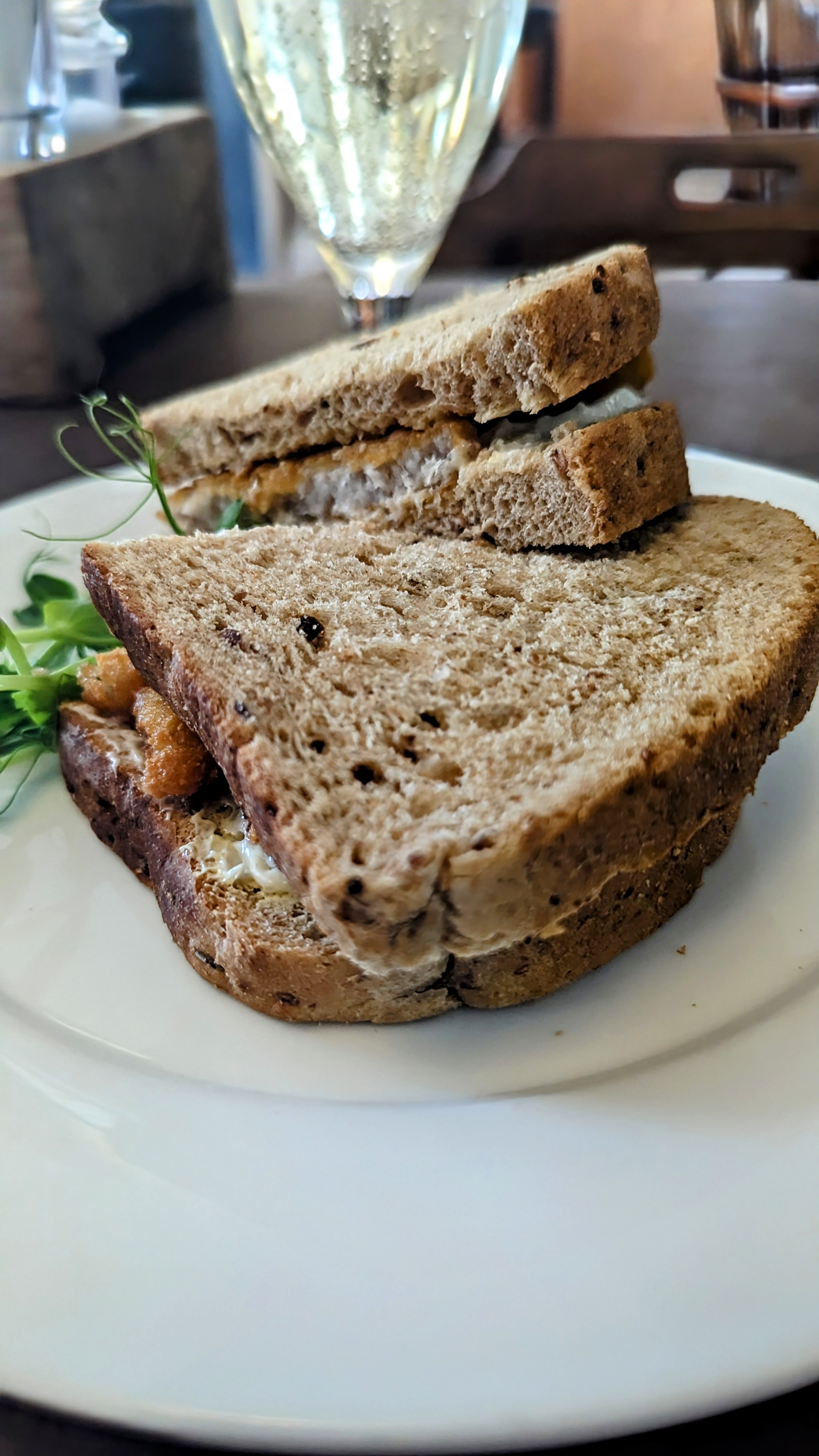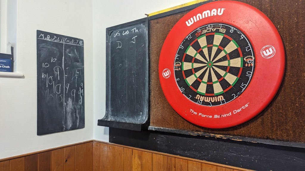 We’re allowed to approach the bar, dither only a second before choosing the local Pilgrim and fish finger sandwiches, and sit where we like.