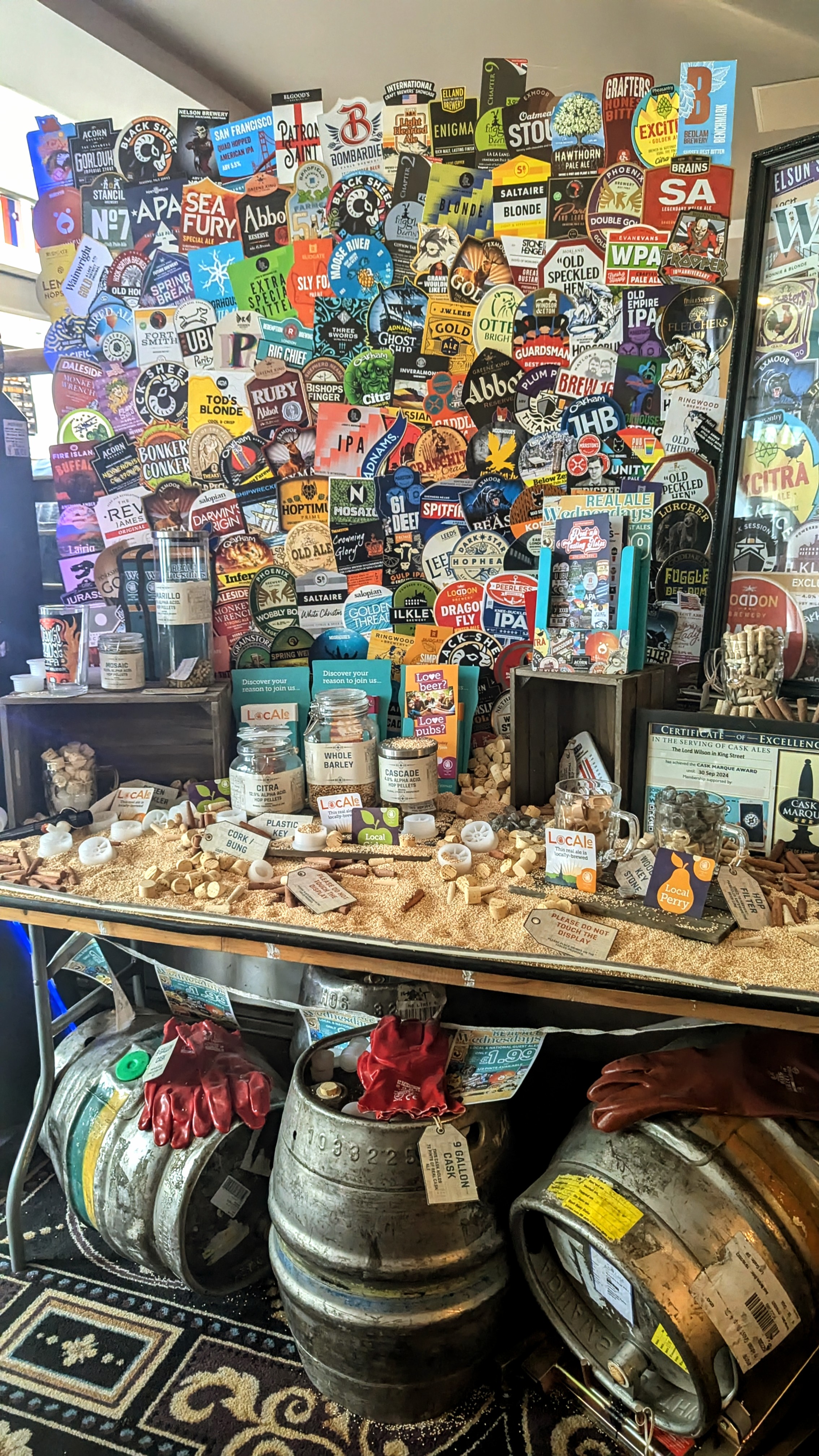 It’s one of those “secondary town Spoons” that like to make it look like they’re keen on cask by sticking old pump clips to a blackboard and jars full of barley (whatever that’s got to do with beer !).