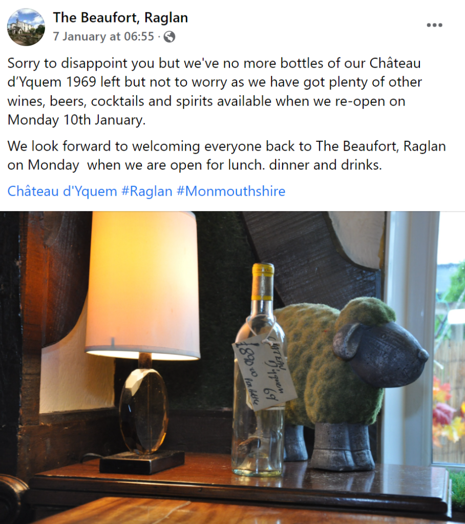 and the Posh (Monmouth, Raglan, Caerleon), places where they once voted Conservative before the Tories for blamed for the lack of Château d’Yquem 1969.
