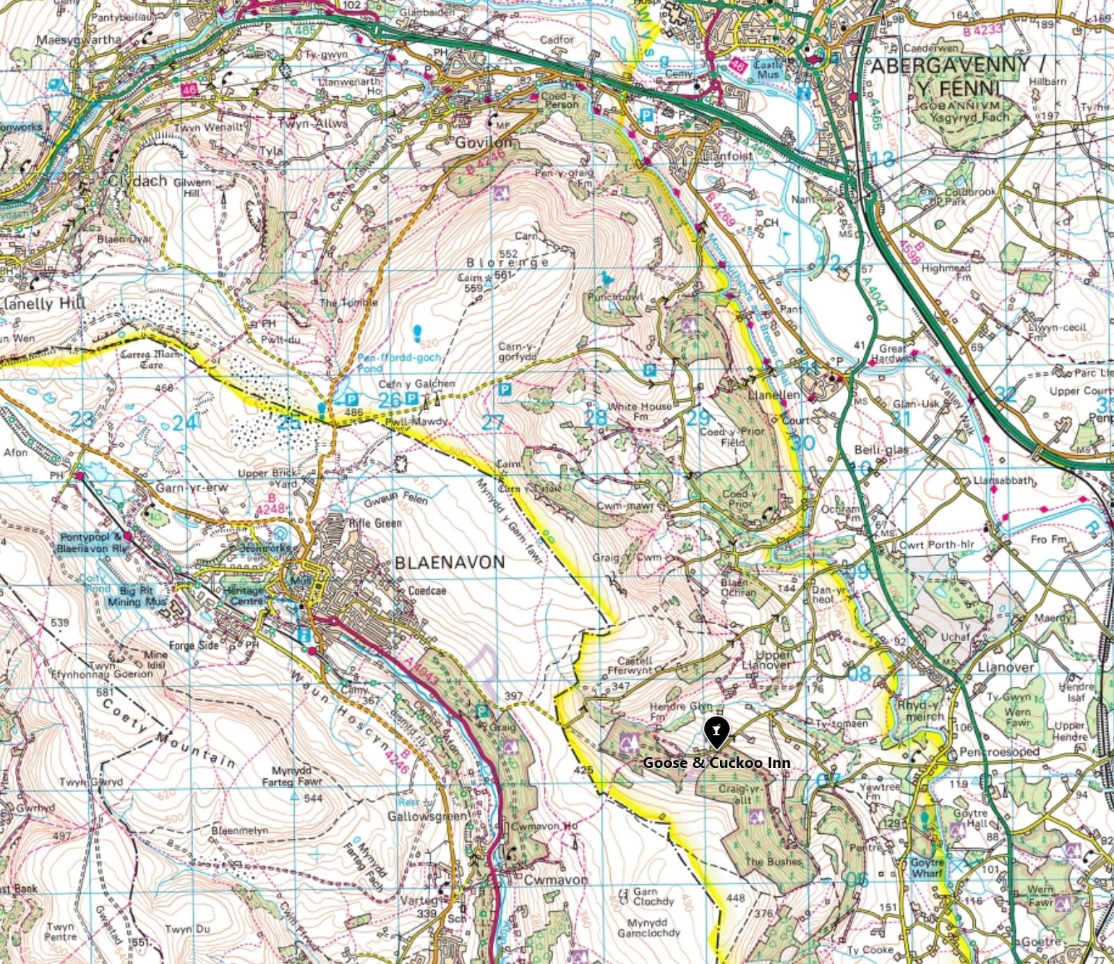 A mile from Abergavenny,