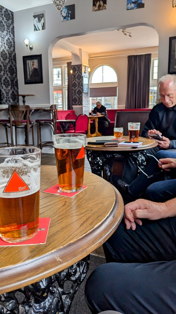 She needn’t have worried. This was a CAMRA approved artisanal exploration led by an experienced group leaders. It was possible we’d only be sipping thirds, though oddly my notes say “Not had a half pint since 74“. No idea who said that.