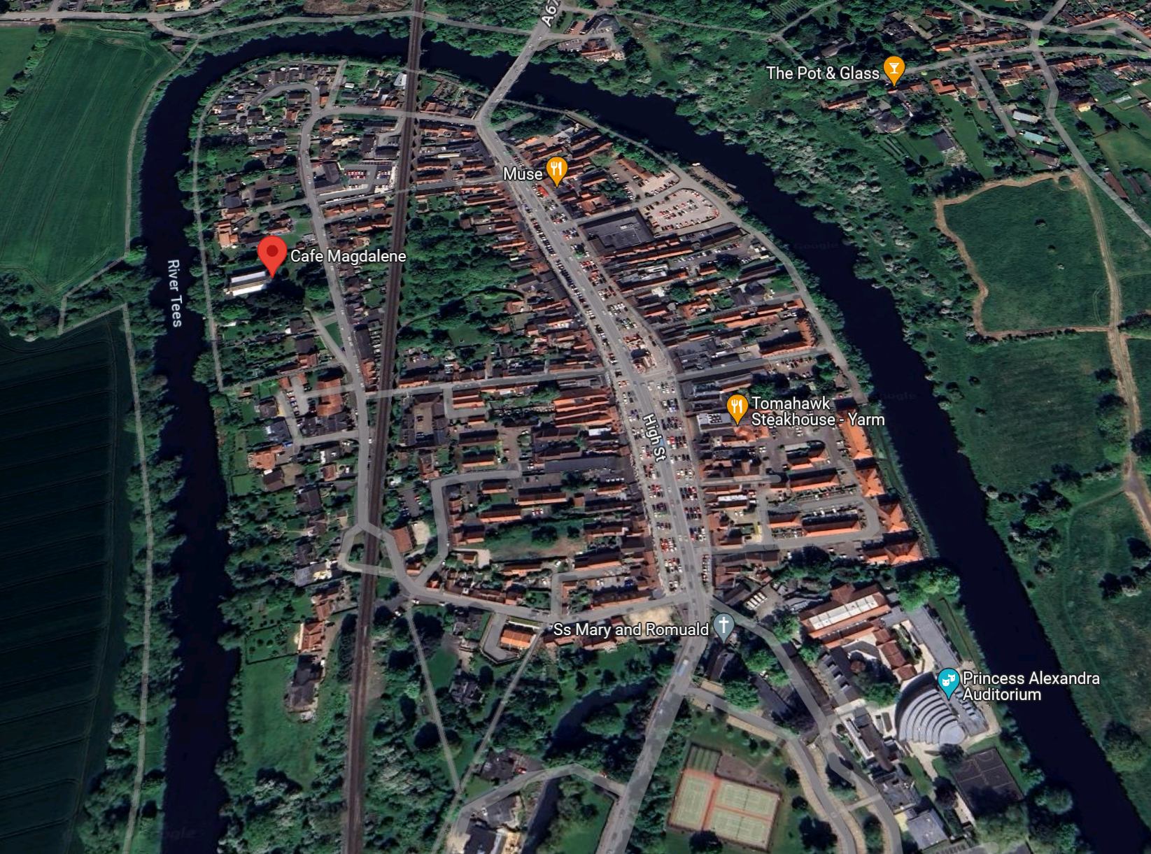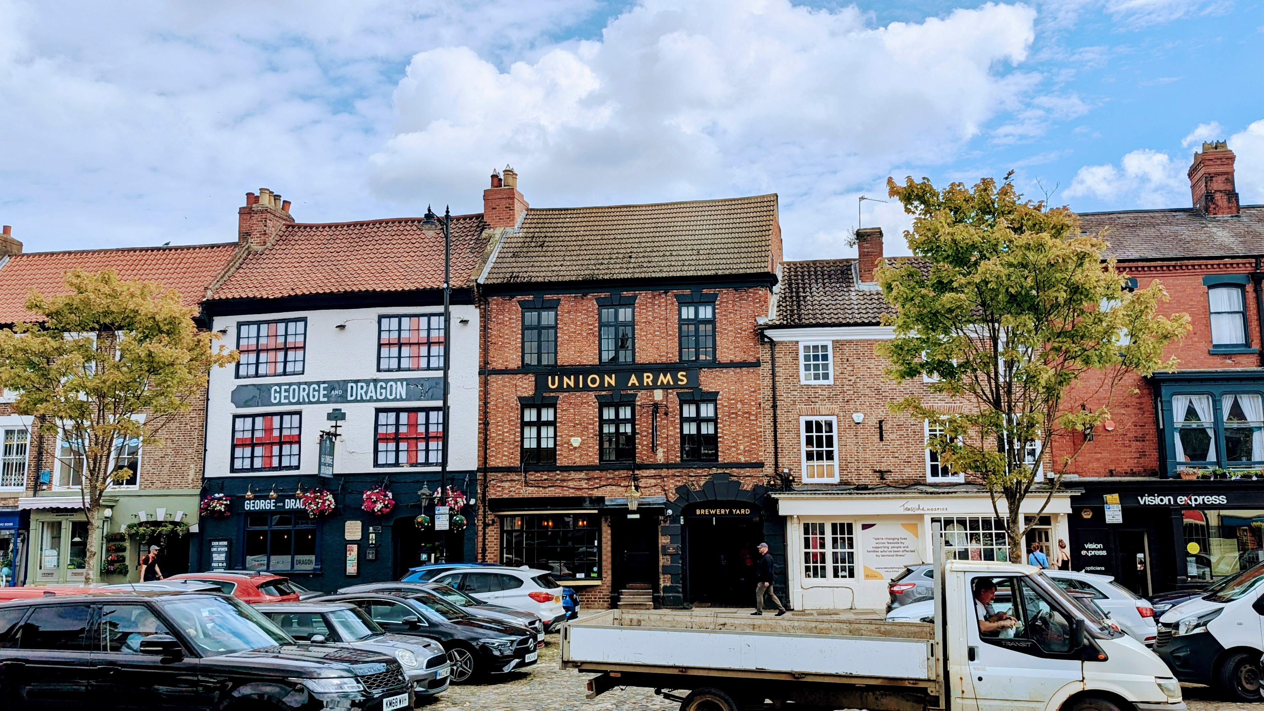 I think Spinko had a rather different stop in mind in posh Yarm, the “Marlborough of the North”, but it was too early for a Bass hunt, and an hour’s free parking is just enough to take in the treasures of a town best appreciated by above.