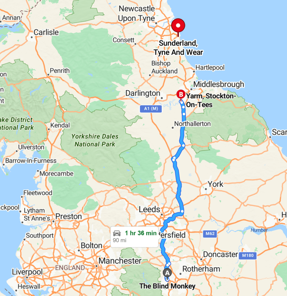 The previous week Google maps had directed us back from Blyth via the A1 due to issues at the tunnel, but generally it’s the A19. The only problem is that little temptation in Stockport.