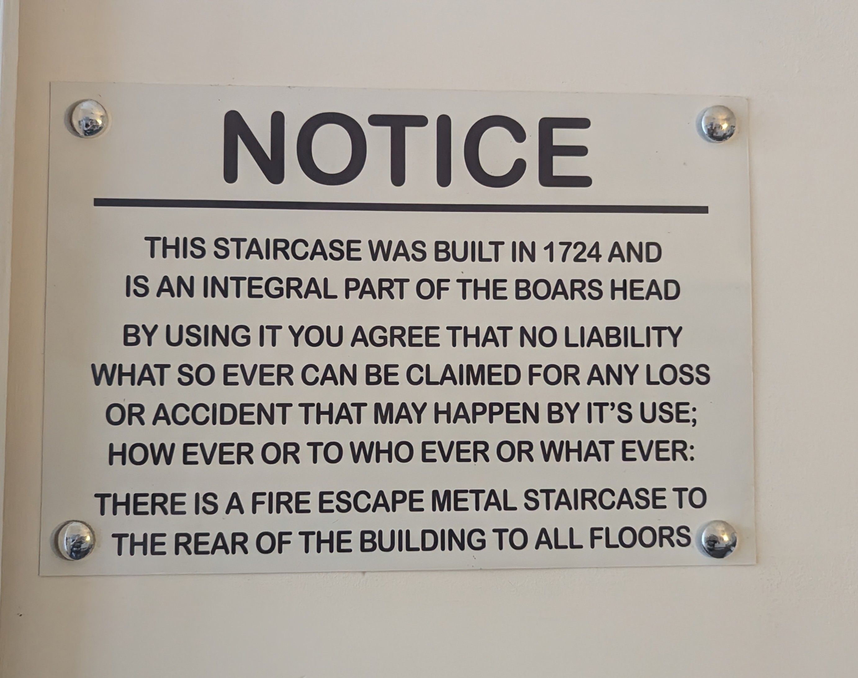 Steep climbs are part of the appeal, outside and in, and I’m warned about the steep stairs 3 times, which at least made sure we came home sober(ish).
